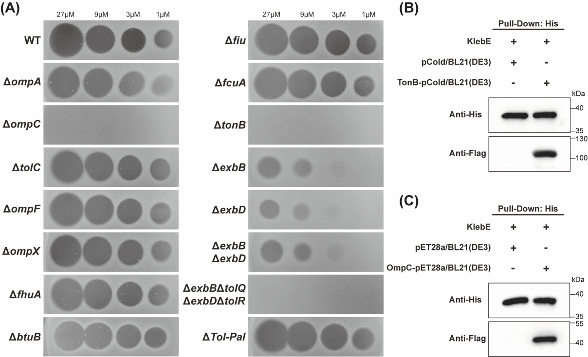 图2. KlebE转运相关膜蛋白的筛选与鉴定