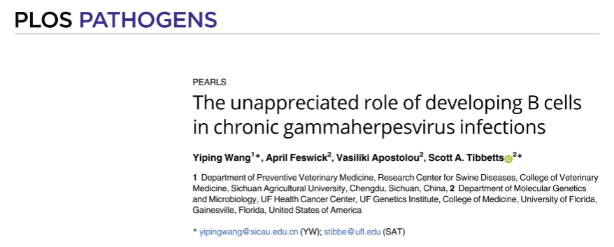 近日,bat365官网青年教师王一平博士与美国佛罗里达大学Scott Tibbetts教授合作在国际权威学术期刊《PLoS Pathogens》发表了题为“The unappreciated role of developing B cells in chronic gammaherpesvirus infections”的综述文章(Pearls mini-review),对发育B细胞在γ疱疹病毒感染和疾病中的作用进行了系统总结,并提出了一种γ疱疹病毒潜伏感染建立和维持的全新工作模型。