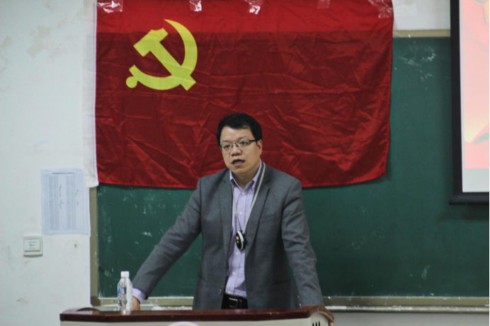 开班仪式结束后,党委书记廖鹏为入党积极分子讲授本期培训班第一课——《中国共产党的指导思想》。廖鹏通过《中国共产党章程》引出了“什么是指导思想”、“指导思想的发展阶段”、“坚持用党的思想指导实践”三方面内容,以此详细介绍了100年来中国共产党指导思想的发展历程。在建党100年来,回顾历史,从中共一大将“马克思列宁主义”作为党的指导思想到中共十九大将习近平新时代中国特色社会主义思想作为自己的行动指南,结合理论联系实际,中国共产党的指导思想不断发展完善。