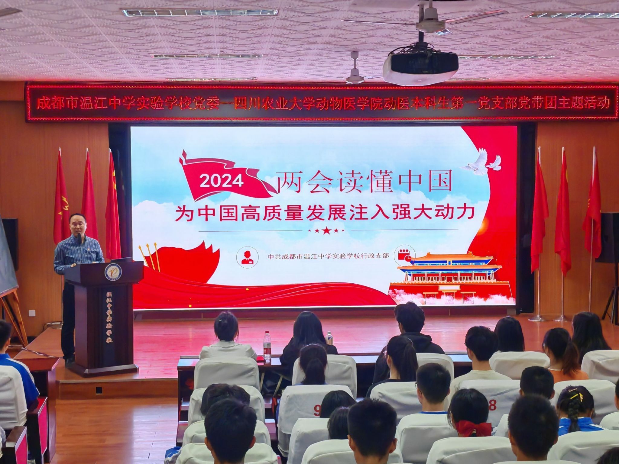 活动伊始,温江中学实验学校行政党支部书记为大家深入解读了全国两会的重要精神和政策导向,分享了个人感悟,使同学们对两会精神有了更加深刻的理解。