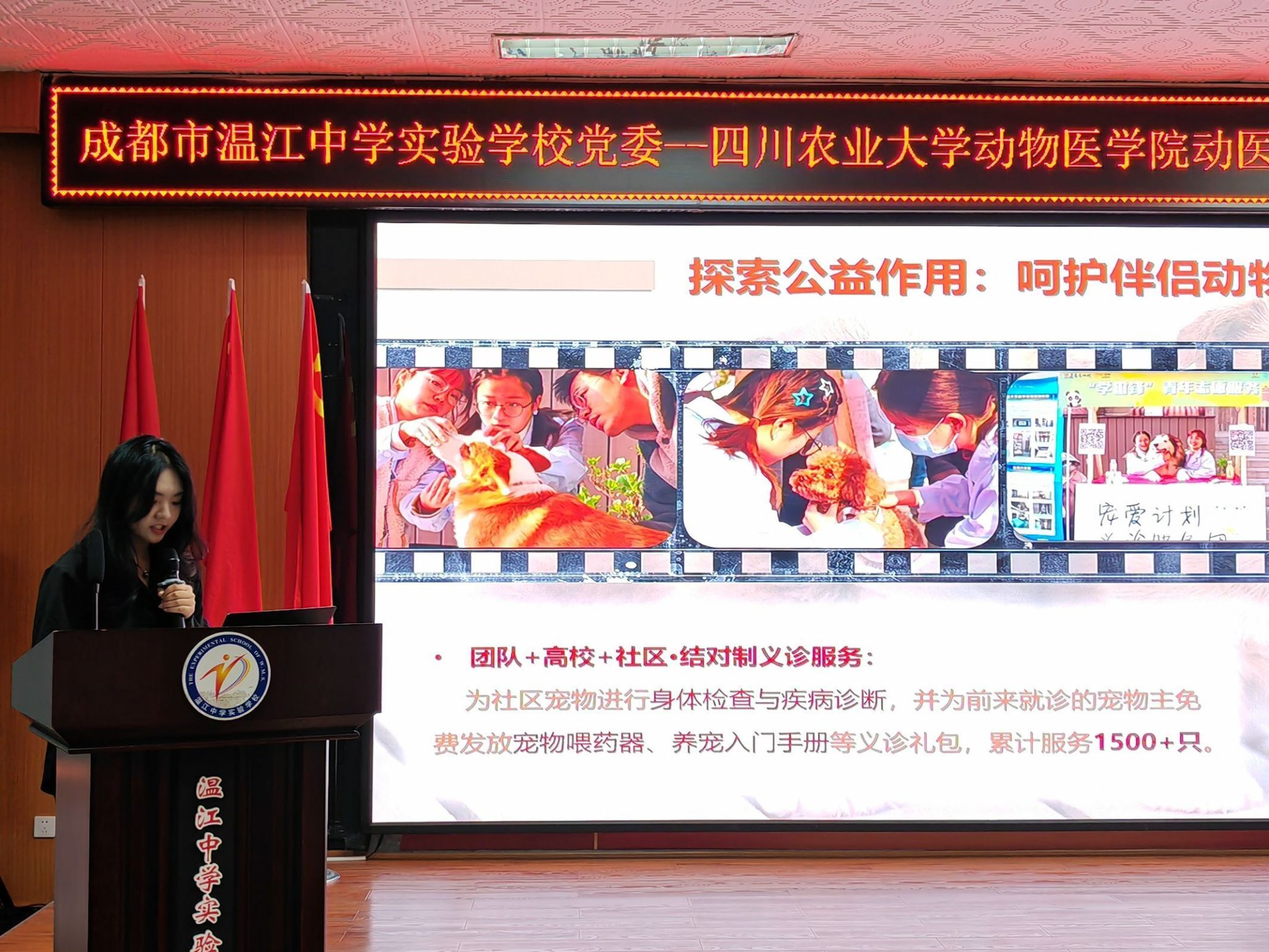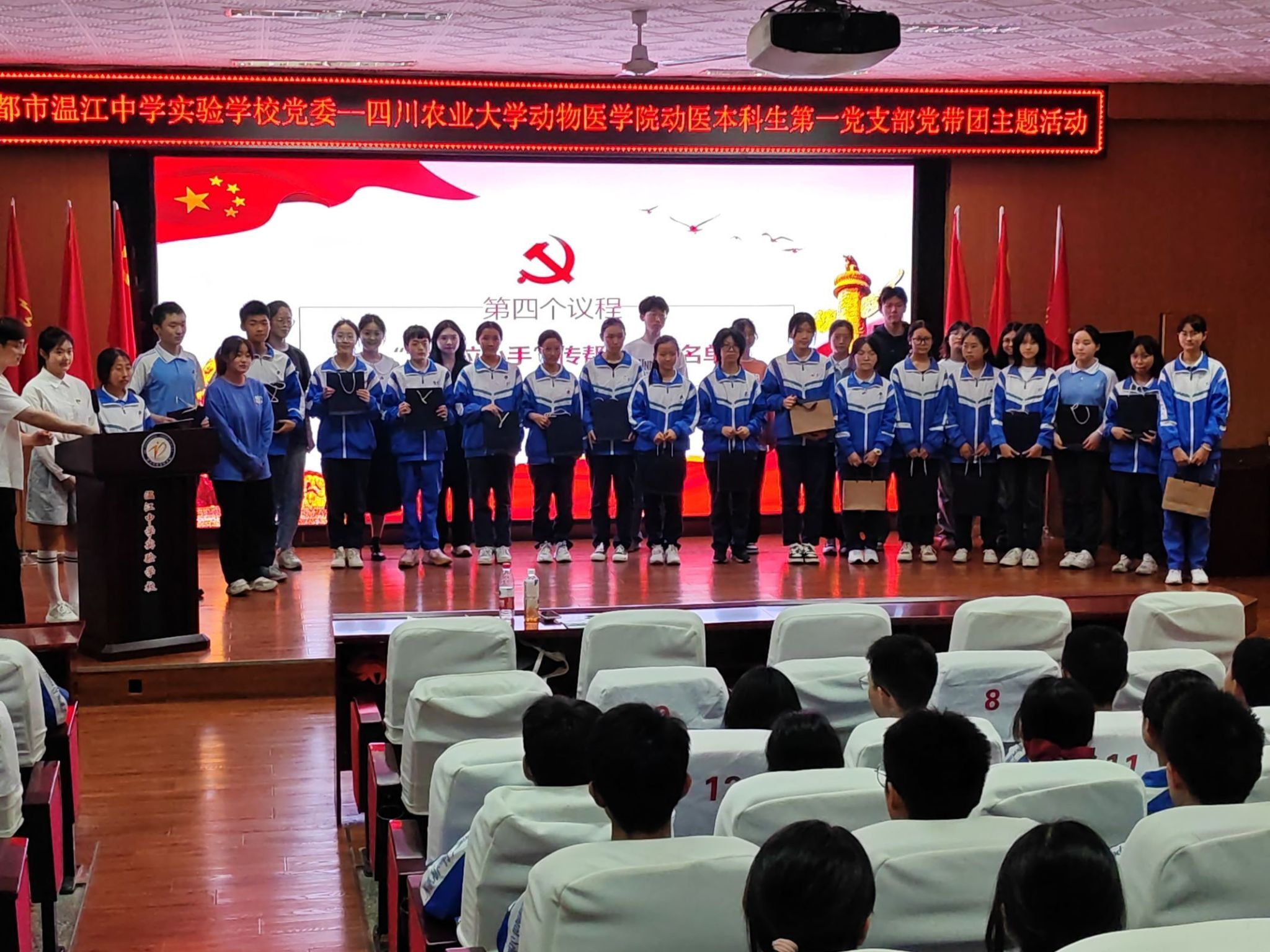 活动中,动医本科生第一党支部还代表学院团委与温江中学的18个团支部进行了“大手拉小手”传帮带结对,后续将通过与温江中学签订合作协议,共同开展志愿服务和红色理论宣讲等活动,传播社会主义核心价值观,增强爱国主义教育,将团校小课堂与思政大教育有机融合,打造立体化、沉浸式党团思政教育新模式。