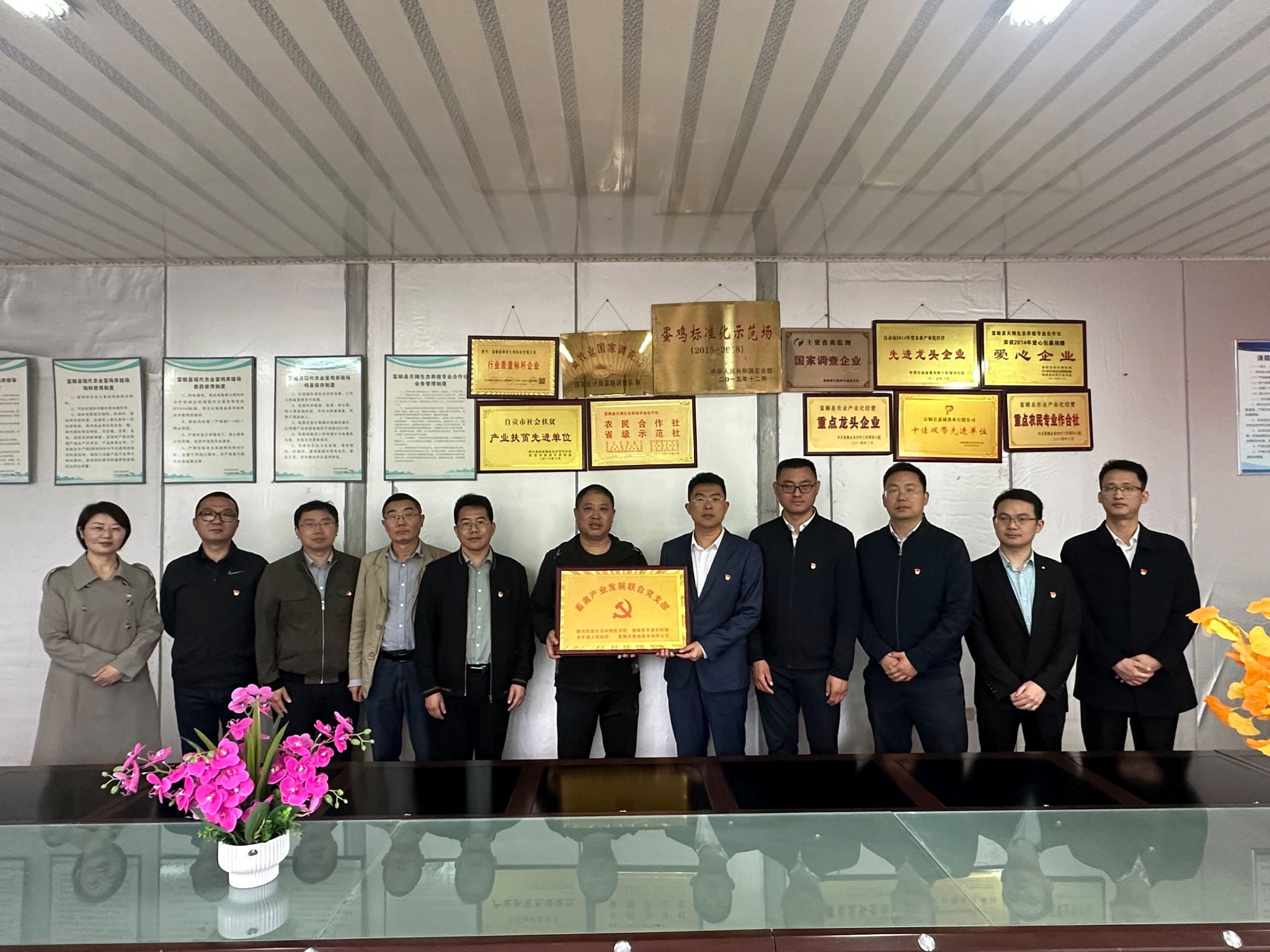 会后,bat365官方网站专家团队深入富顺县养殖基地开展实地调研,现场指导粪污资源化利用等关键环节提出技术改进建议。期间,双方举行联合党支部授牌仪式,通过设立“双带头人工作室赋能工作站”“一村一博党员先锋岗”等平台,将党建优势转化为服务产业发展的实际效能。