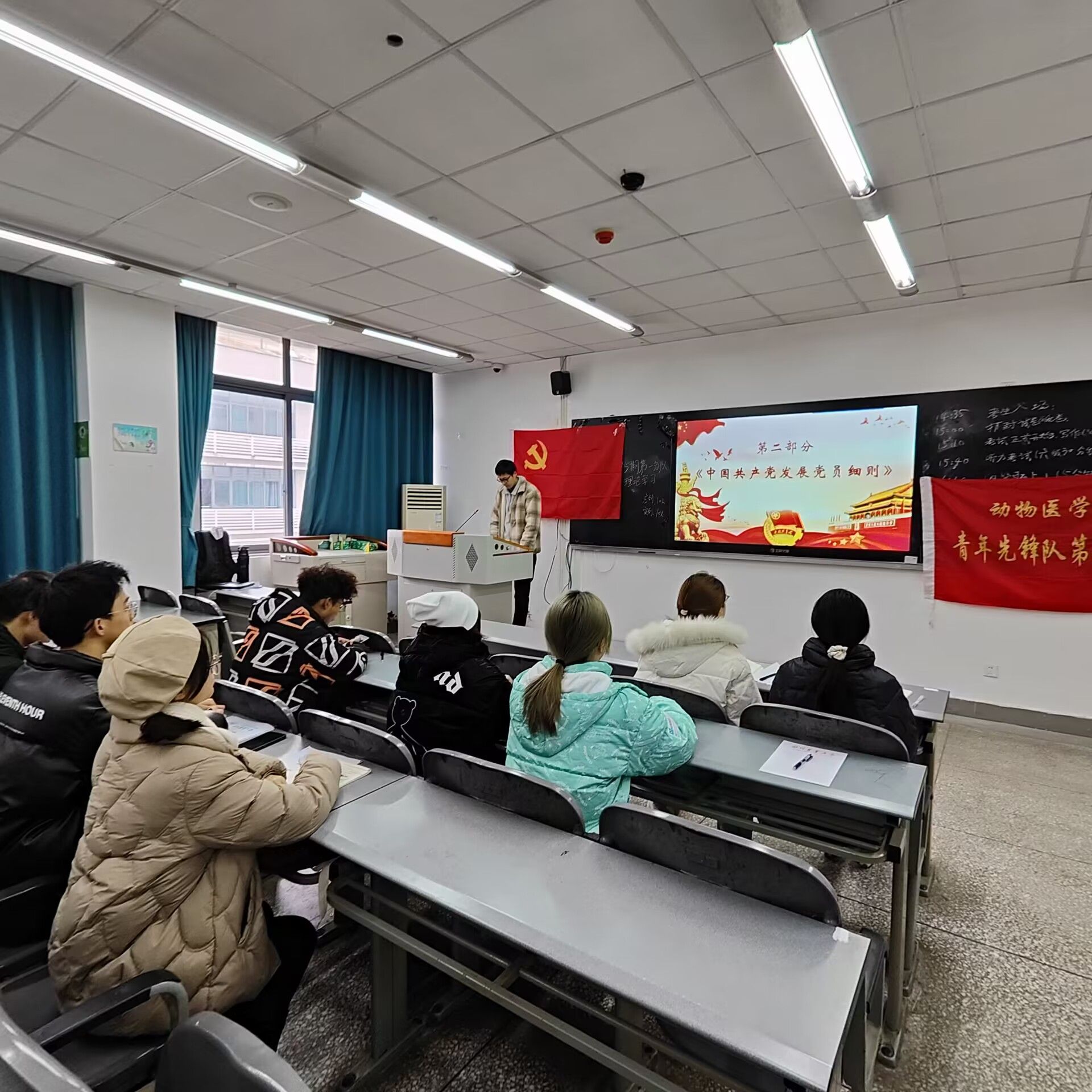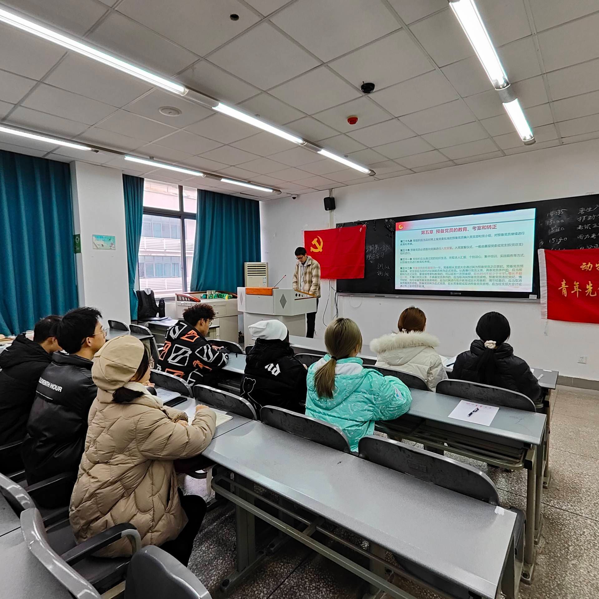 2023年12月20日,bat365官方网站第95期青年先锋队第一分队在4B–510进行了12月份的理论学习。本次学习共分为三个板块,分别是理论学习、小组讨论、个人发言,共有10人参与。本次学习主题为“《中国共产党发展党员工作细则》及相关工作流程”,旨在让各位青先队员了解并熟悉中国共产党发展党员工作细则和相关流程工作。