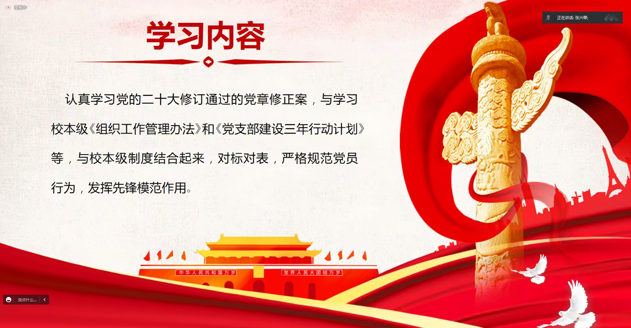 此次活动线上举行,深入学习宣传贯彻党的二十大精神,是全党全国当前和今后一个时期的首要政治任务。我们党支部按照学院的部署要求,进行了此次组织生活的学习。