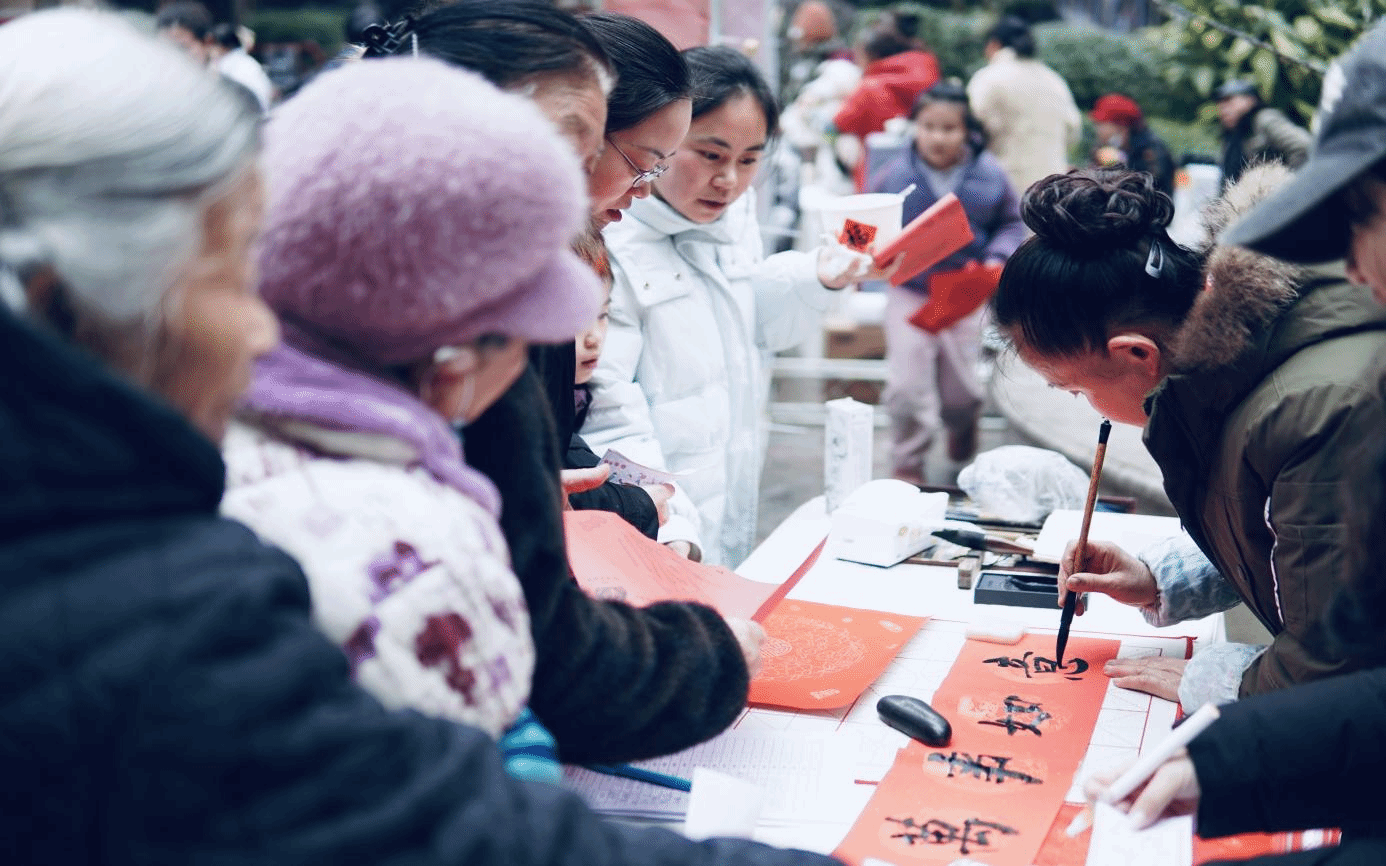 1月31日,腊八主题线下游园会热闹开场,拓印、剪纸、投壶等传统体验摊位前人头攒动。在支教队员与社区工作者的悉心指引下,孩子们沉浸式体验非遗技艺,感受非遗魅力。火红的剪纸寄托祝福,吉祥的拓印承载年味,集章兑粥传递暖意,派送挂件串联温情,让节日馨香沁润心间。线上同步推出“福满元宵,灯映新春”主题视频,通过福字与灯谜的创新设计,呈现传统民俗的现代表达。