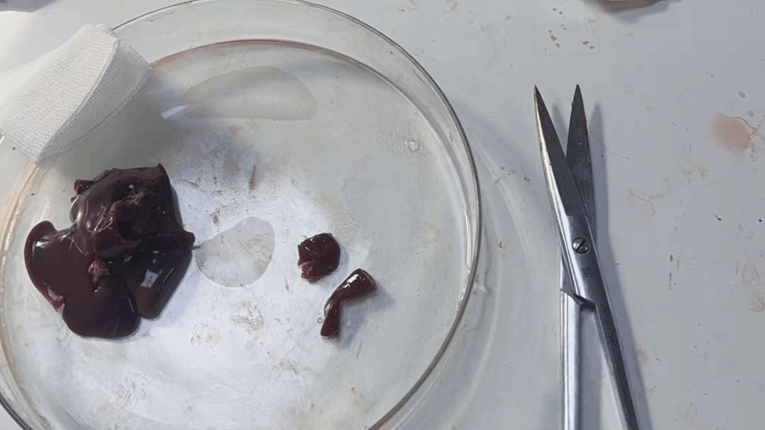 解剖前,团队严格遵循动物实验伦理,规范麻醉三黄鸡,对器械高温灭菌,备好实验用品。待鸡只麻醉后,固定并消毒,搭建无菌环境。随后先翅根采血分离血清用于肝功能检测,再快速摘取肝、胃、肠道组织,全程规范操作,保障样本质量。