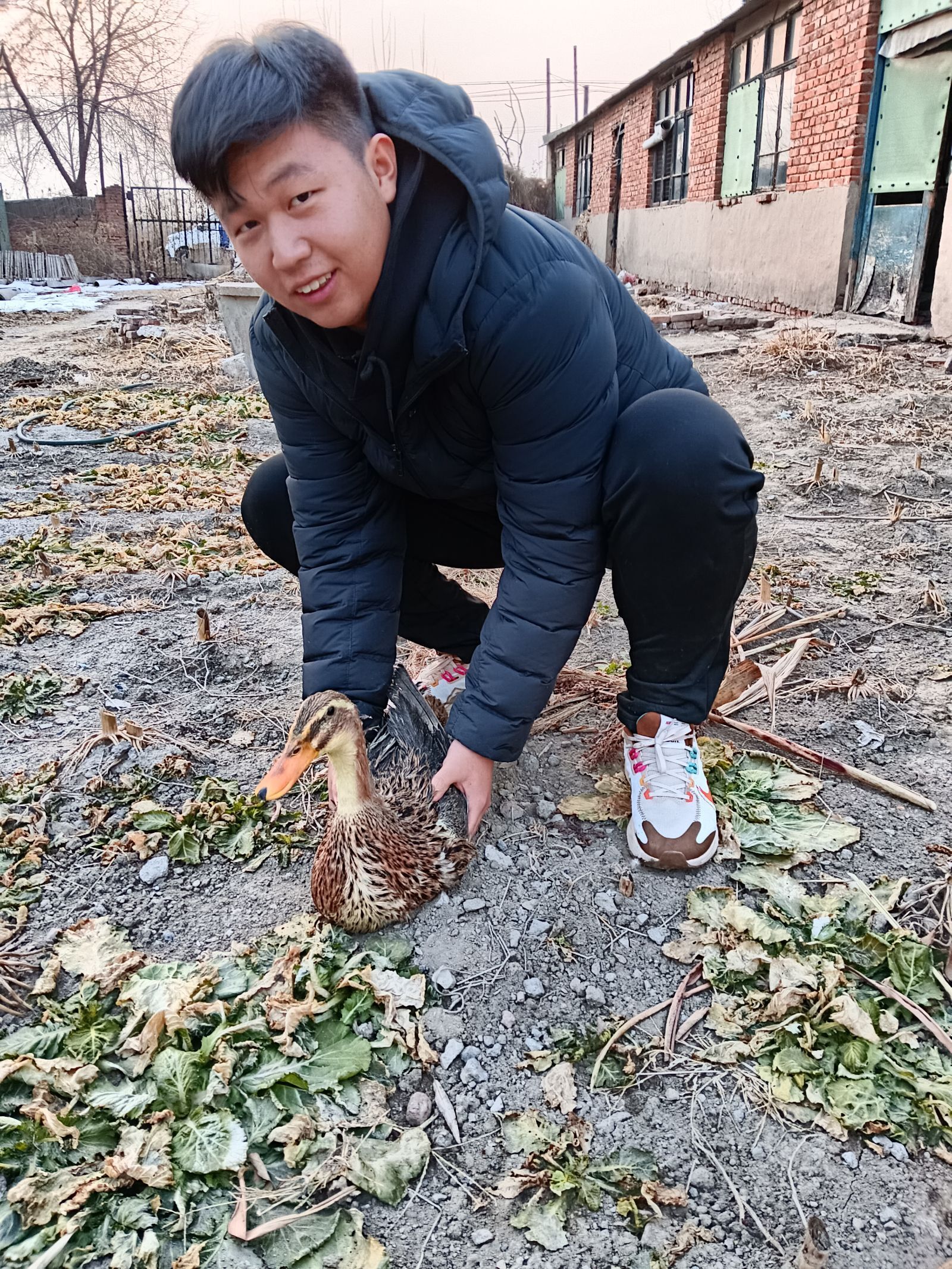 1月16日下午,团队队员魏士博前往河北省唐山市曹妃甸区唐海镇一小型农场进行实践。在北方,由于气候条件影响,农场内的房子均为保温性较好的砖房,砖房周围有稻草包绕以维持室内温度,鸭则被饲养在由稻草搭起的小窝中,小窝外侧放置着混有豆饼和粗粮的饲料盆。魏士博经观察后表示:鸭饲料主要分为热量饲料和蛋白质饲料两种,在计算饲料比例时,应根据肉鸭的生长阶段变化而不断调整。