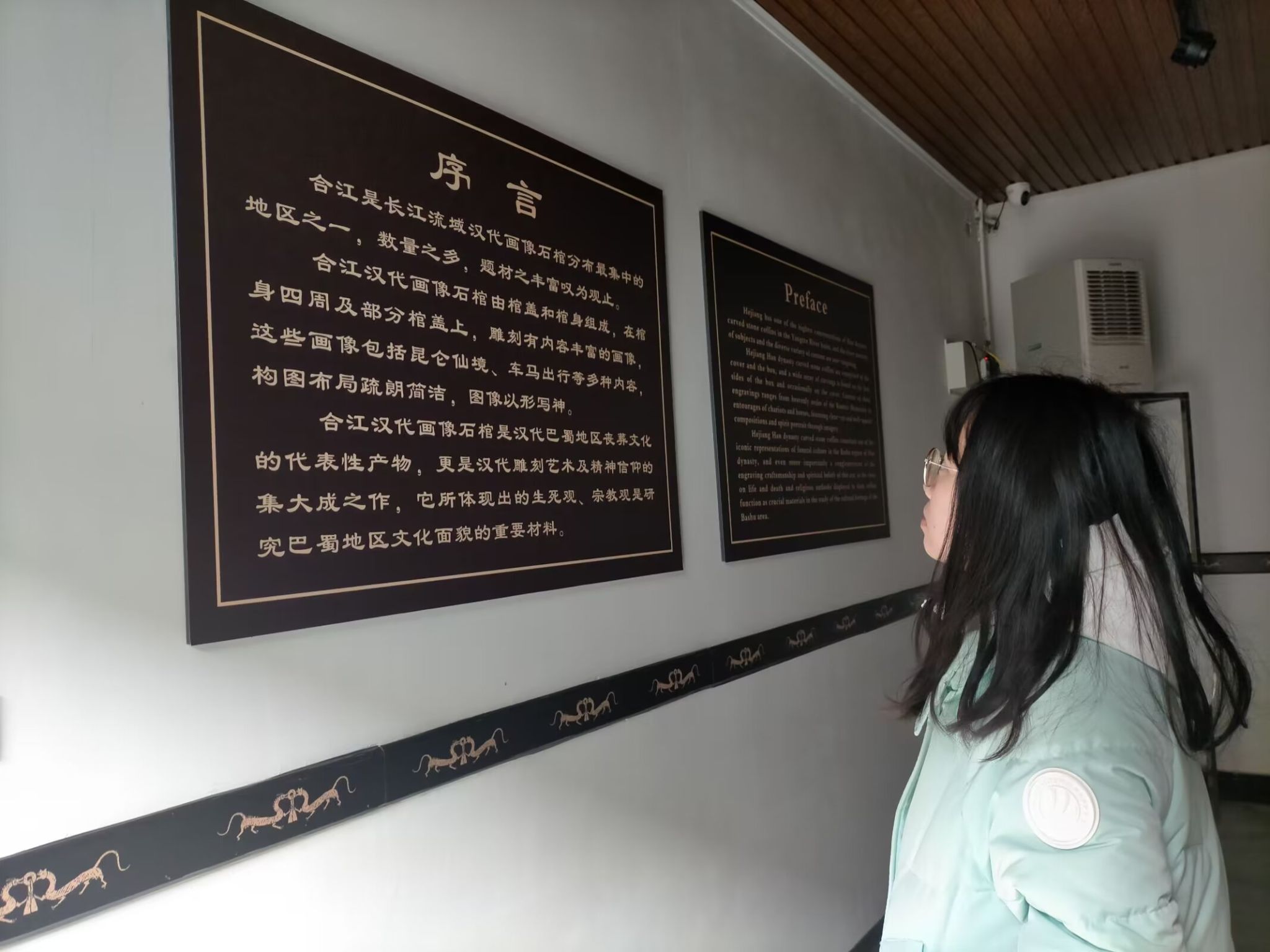 (图为参观汉代石棺博物馆时拍摄照片)