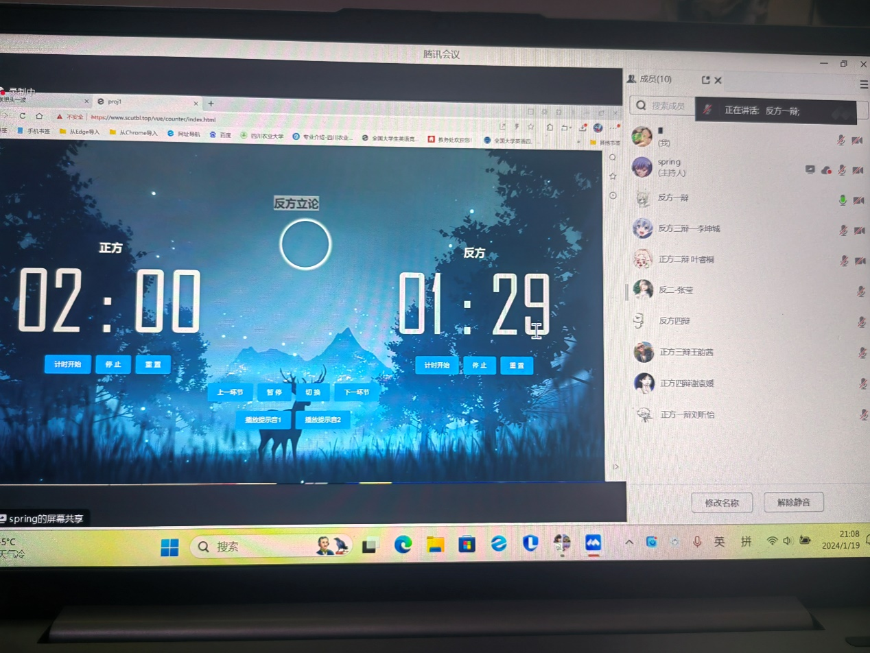 友谊赛结束后,小组成员于1月25日在腾讯会议上进行了复盘,发现了许多不足。成员谢袁媛表示:“论证意识缺乏,逻辑思维能力欠缺。”成员叶睿桐补充道:“比赛中需要细心倾听对方辩手的发言。”教练喻琪媛表达了对成员的期望,“希望大家把辩论中的思考带入自己生活的每一天。”