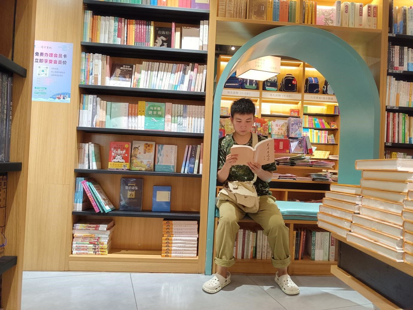 (图为周施惠在书店查阅资料)