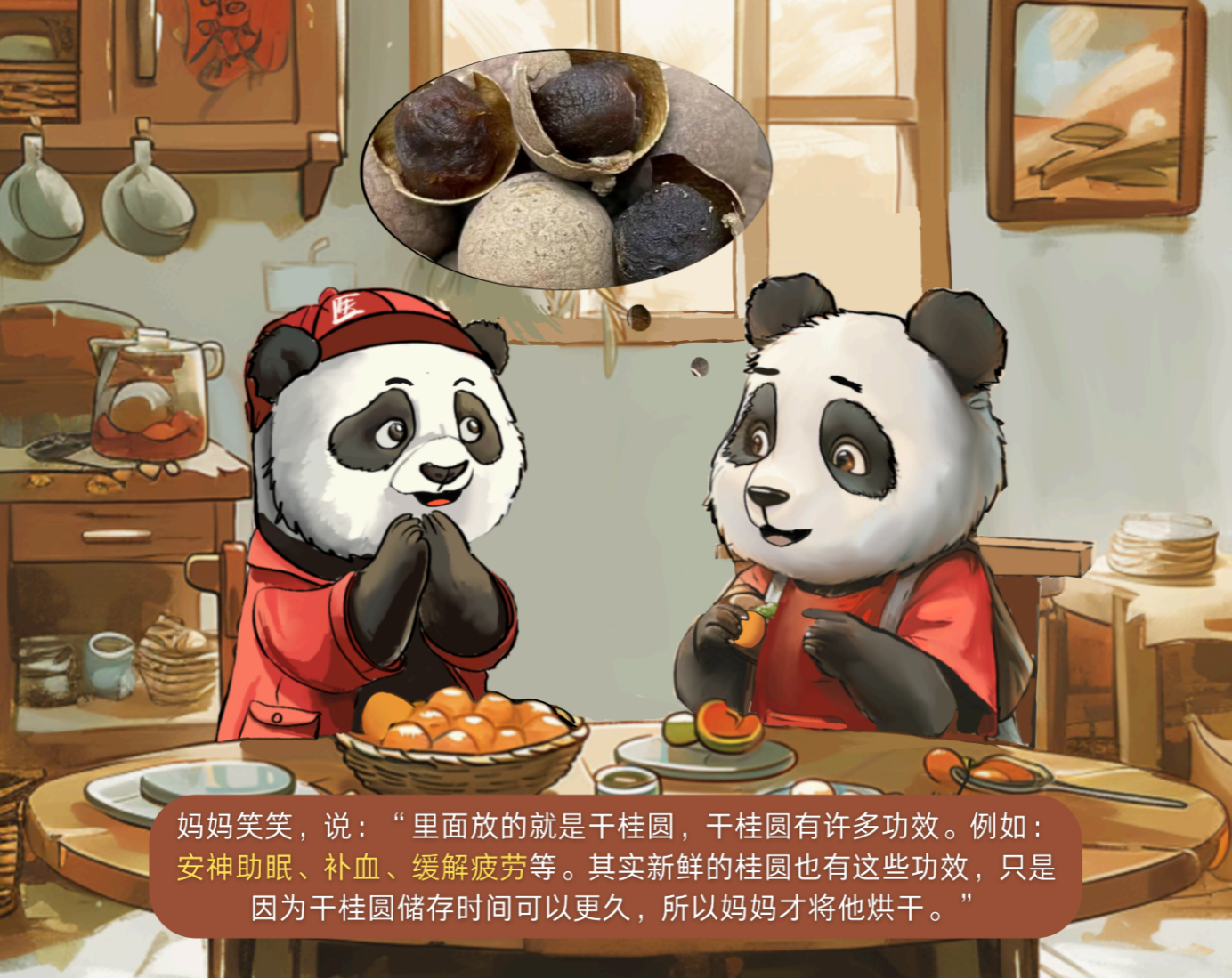 绘本团队针对居民随意用药、对药物禁忌不清、抗生素滥用及对“食物相克”意识不高等经调研得出的普遍问题,分别制作了干桂圆功效、海带与甘草、黄连与猪肉、维生素与青霉素及酒精和药物等内容的绘本。绘本内容囊括常见食品营养价值及食用功效,相克食物举例及产生相克原因及常见药品基本知识等,覆盖了全面的用药知识。