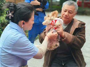 义诊过程中,才冬杰老师细致地对每一只宠物都进行了检查——包括听诊、口腔、耳朵检查等,同时针对宠物们的不同情况,给出了专业的健康建议和治疗方案。志愿者们则负责登记宠物信息和调研社区养宠情况,引导宠物主人进行义诊并耐心解答他们的疑问。整个活动流程顺畅,现场气氛融洽,居民们纷纷表示受益匪浅。