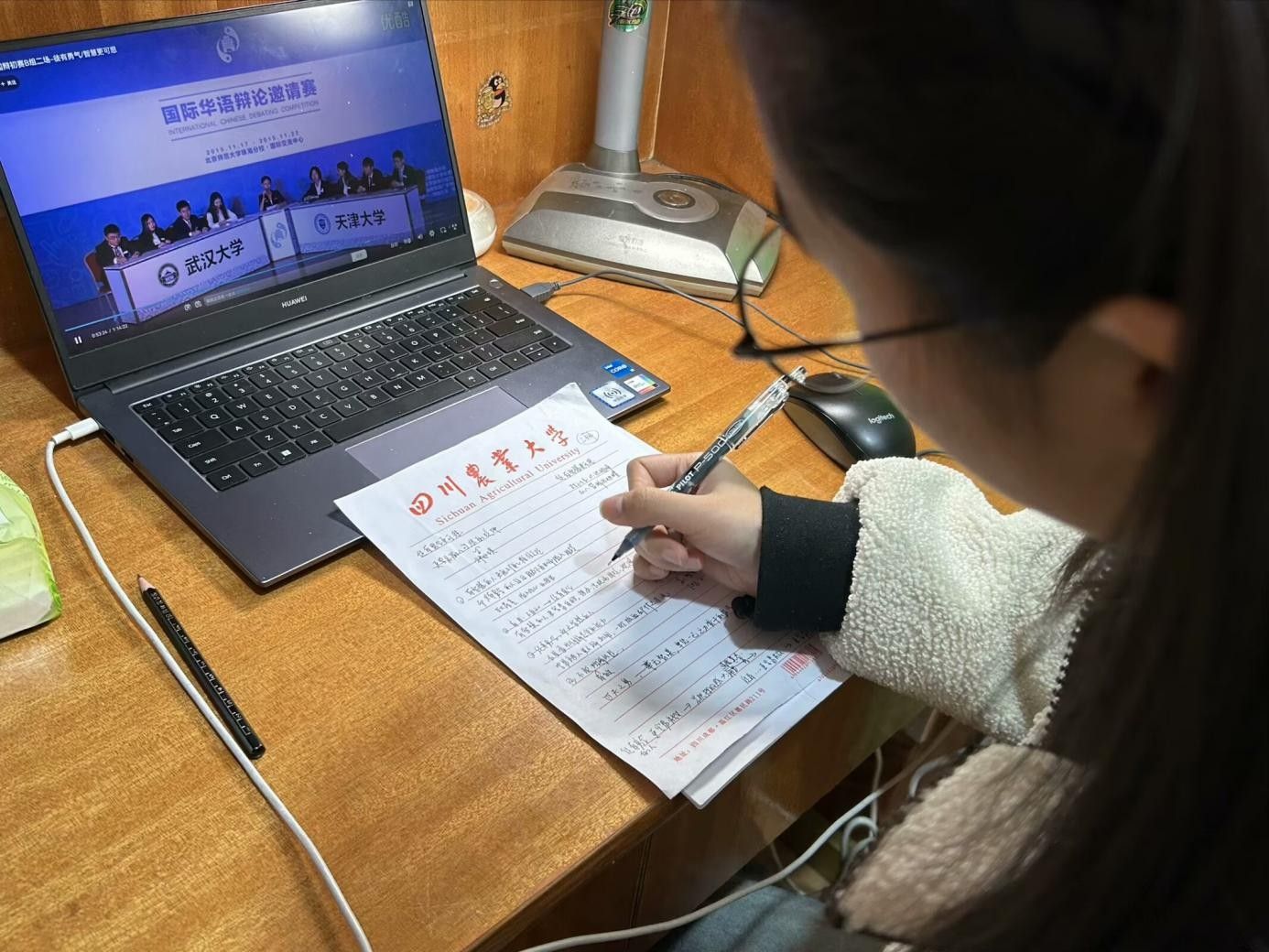 每一次的训练赛前,bat365官方网站辩论队的教练会通过腾讯会议等网络平台为队员们讲解辩论方法与辩论技巧。辩手们认真思考和书写笔记,积极进行准备。面对困难和逆境,队员们积极调整心态,正面思考,保持乐观和坚定,在不断的思考和交流中,找到解决问题的方法,达成共识,在务实的队训中,增强语言组织能力,提升自我。