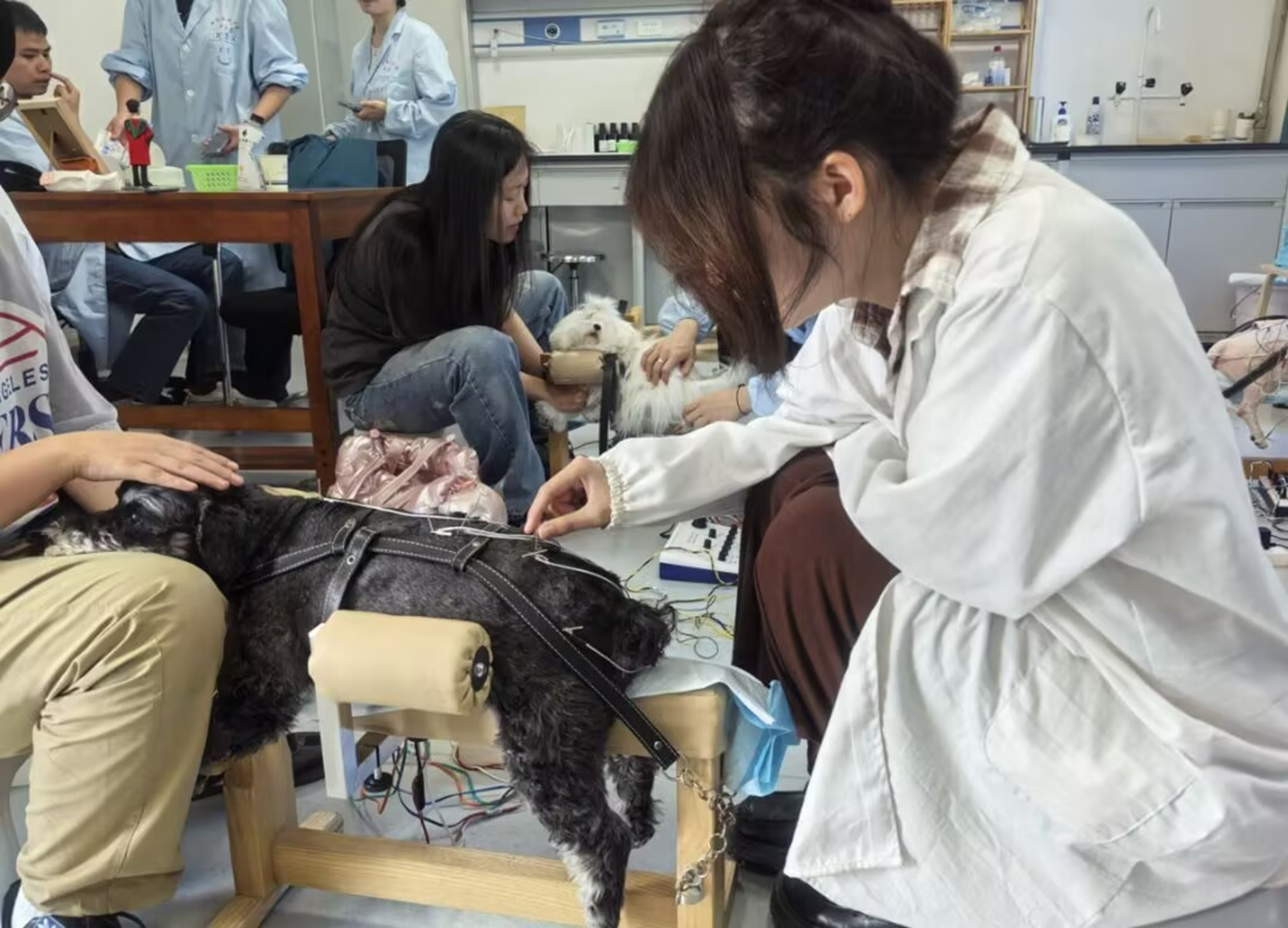 实践过程中,贺浠玥、余苗、张文瑄3名成员率先投身企业见习板块,暑期伊始便进入bat365官方网站教学动物医院——这所国内一流的动物医学临床实践基地,开启了为期一个多月的实习历程。其中,贺浠玥专注中兽医门诊实践,在传统诊疗技术与现代动物医学的结合中积累经验;余苗与张文瑄则深入西医门诊和住院部,直面临床诊疗全流程。实习期间,三人全程参与动物保定、跟诊学习、术前术后护理及临床病症检验等核心工作,临床实践能力得到系统性提升。