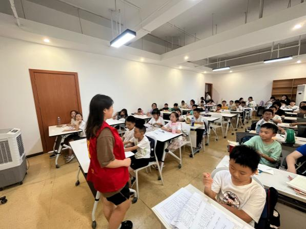 7月26日,在社区助教活动中,分队队员化身 “临时老师”,开启趣味教学之旅。实践首日,队员们便投身辅导孩子作业的工作。数学题的巧思引导、语文阅读的深度剖析、英语单词的趣味记忆,都在“临时老师”耐心陪伴下有序进行。面对难题,队员们不是急于给出答案,而是鼓励孩子思考讨论,在这个过程中,不仅帮孩子攻克知识关卡,更培养其自主学习能力。当看到孩子们因做对题而眼睛发亮,队员们深刻体会到付出的力量,也在童真与努力中收获内心的触动。