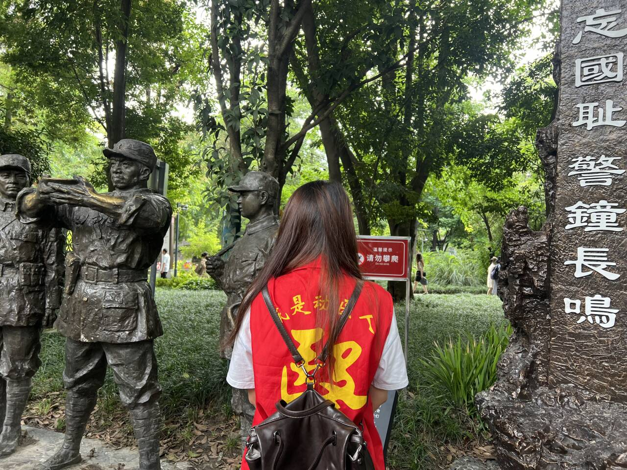 活动的最后一站,队员们探访了成都大轰炸纪念墙。冰冷的石刻记录着侵略者制造的灾难,时刻警醒后人铭记历史、珍爱和平。现场,队员们通过手机资料共享,回顾了大轰炸的惨痛史实,更加坚定了为民族复兴伟业不懈奋斗的决心。