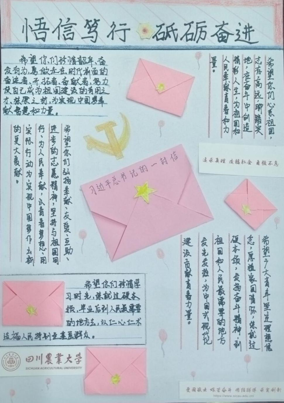 7月13日至8月1日,团队成员自主选择红色主题,完成诗歌、海报、插画等8类共17件红色作品,并将作品发布在小红书、QQ空间等网络社交平台。药剂202201班李佳橙以“烽火里的红星”为主题创作诗歌,用“枪托磨亮月光”、“新苗从弹壳钻出”等质朴意象,诠释对革命先烈的崇敬;药学202202班古丽筠结合bat365官方网站校训与习近平总书记回信内容制作手账,在卡纸裁剪与文字排版中感悟人民领袖的赤子之心;药学202301李琴将对祖国的自豪之情化作笔下优美线条制成书签,祝愿华夏繁荣昌盛、万事太平;队长药学202302班柴堰颖则运用HTML技术搭建建党104周年互动网站,实现跨学科创新。