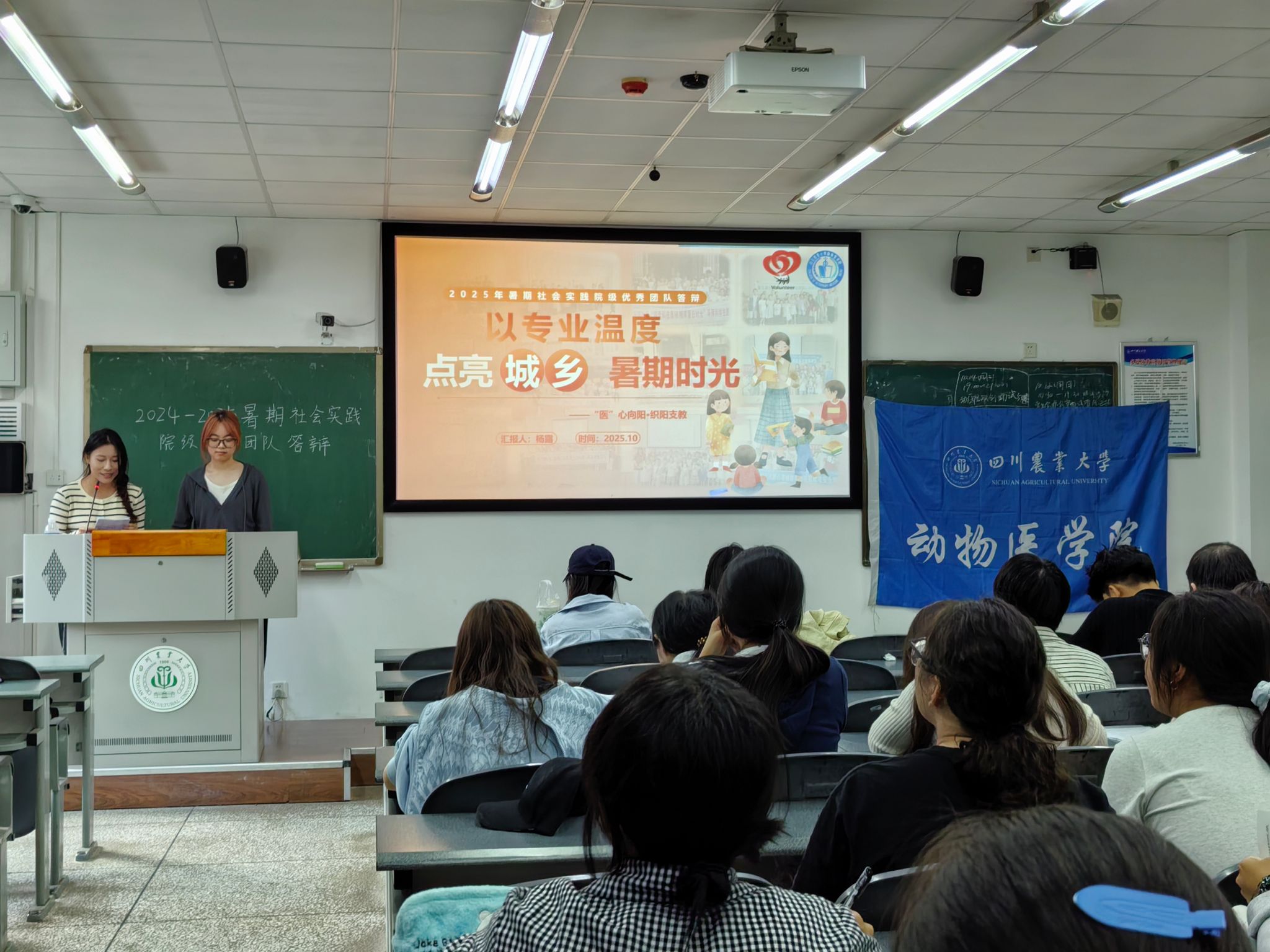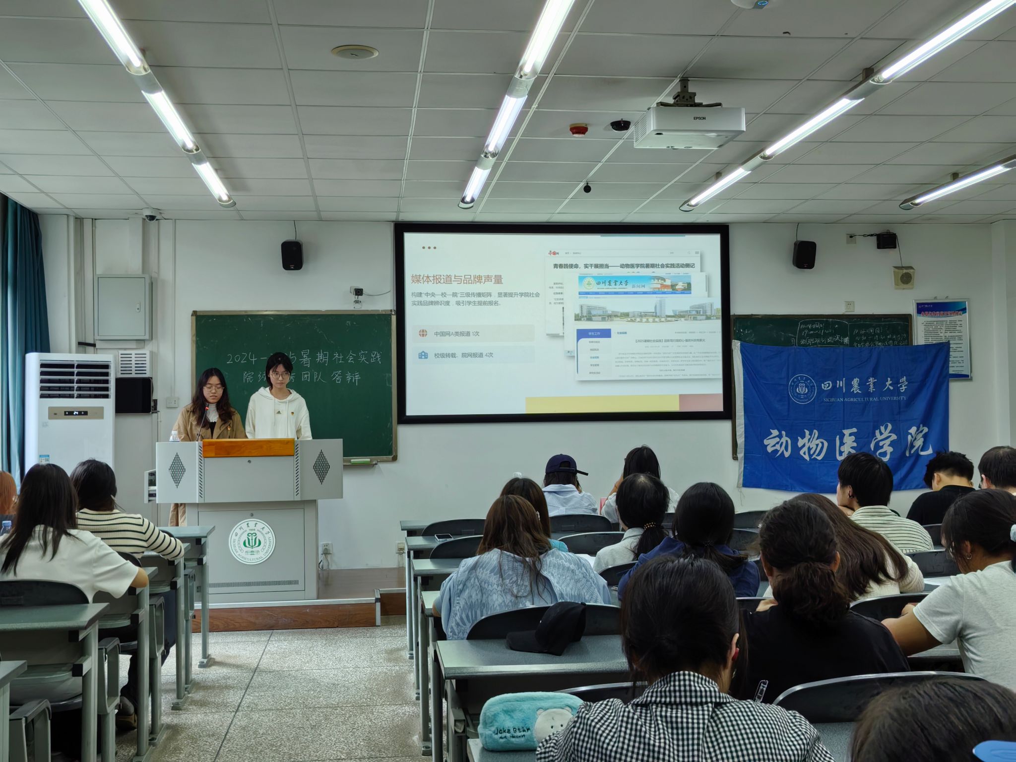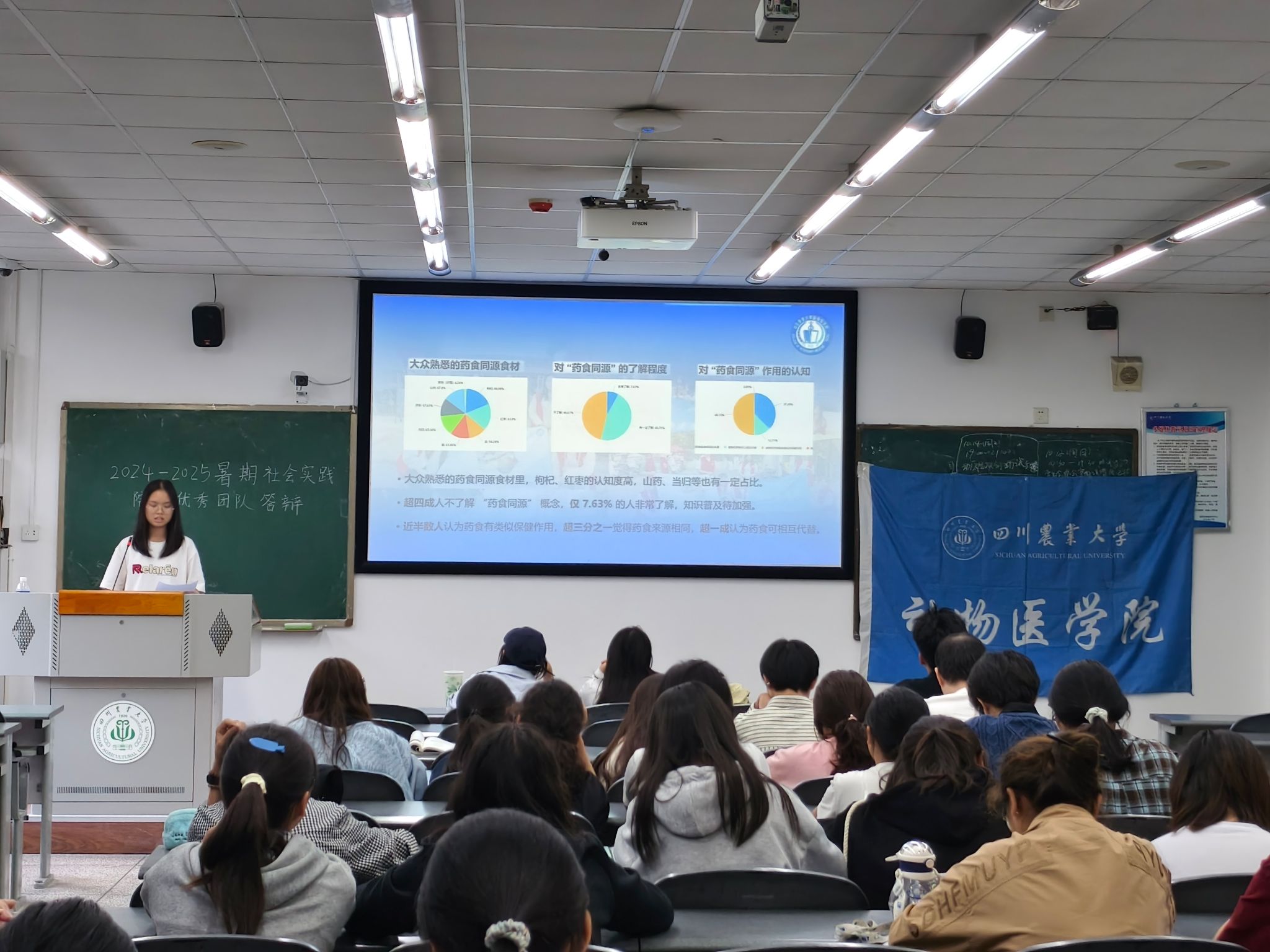 2025年10月14日,bat365官方网站团委在成都校区第四教学楼举办暑期社会实践院级优秀团队答辩会,1292名动医学子以“科创乡村·青年实干”为主题,深入田间地头、社区街巷开展实践,其中562人获评先进个人,5支团队获院级优秀团队,1支团队获最佳人气奖,彰显了新时代青年学农、爱农、强农的担当。