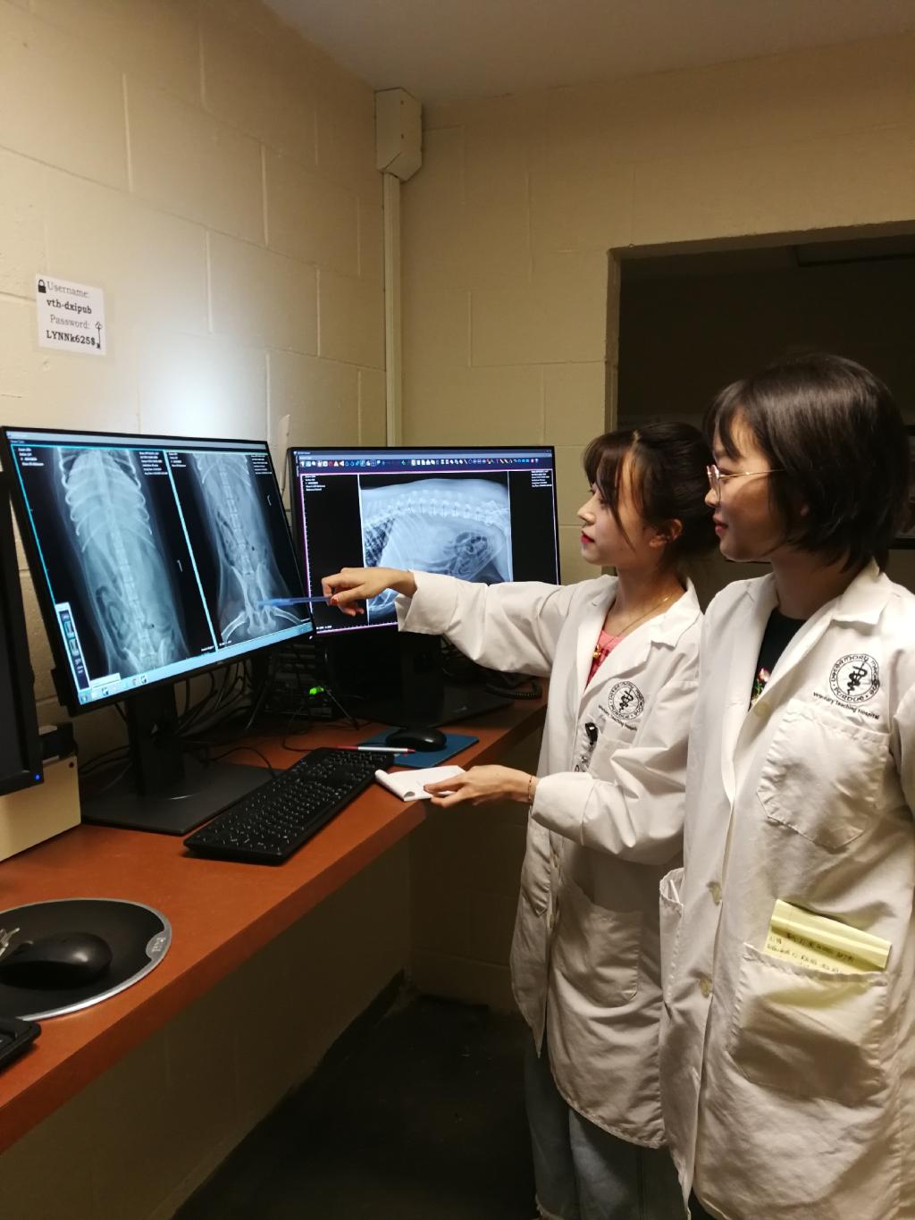 在抵达美的第二天,实习团队就马不停蹄地前往普渡大学动物教学医院开展临床实习。和前三次实习相同的是,每名成员都会被分配到不同科室,包括眼科、口腔科、影像学诊断、小动物外科手术、大动物外科手术、康复科、心脏科、ICU、肿瘤科等。但今年与往年有所不同的是,同学们在经过一周“规定动作”的适应后,在实习的第二周,会各自前往自己感兴趣的科室,进行“自选动作”的实习,充分满足每个实习的需求。在单独实习的过程中,没有事先预习、演练的机会,也没有程式化的解说和丰富的演示,一切都学生需要结合自身职业规划和平日学习经验,独立面对和实习过程中遇到的各种“未知”问题。同时这些表现,都会成为实习考核的指标,决定实习是否合格。