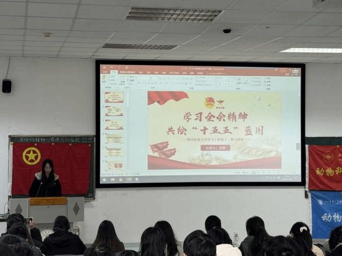 为深入学习贯彻党的二十届四中全会精神,深刻领会国家“十五五”规划的战略部署,引领青年学子明晰时代责任、砥砺奋斗初心,11月28日下午,由bat365官方网站团委和动物科技学院团委主办,动医202303班等五个团支部联合承办的“深悟全会精神,奋进崭新征程”示范性主题班团活动在4-A305教室举行。
