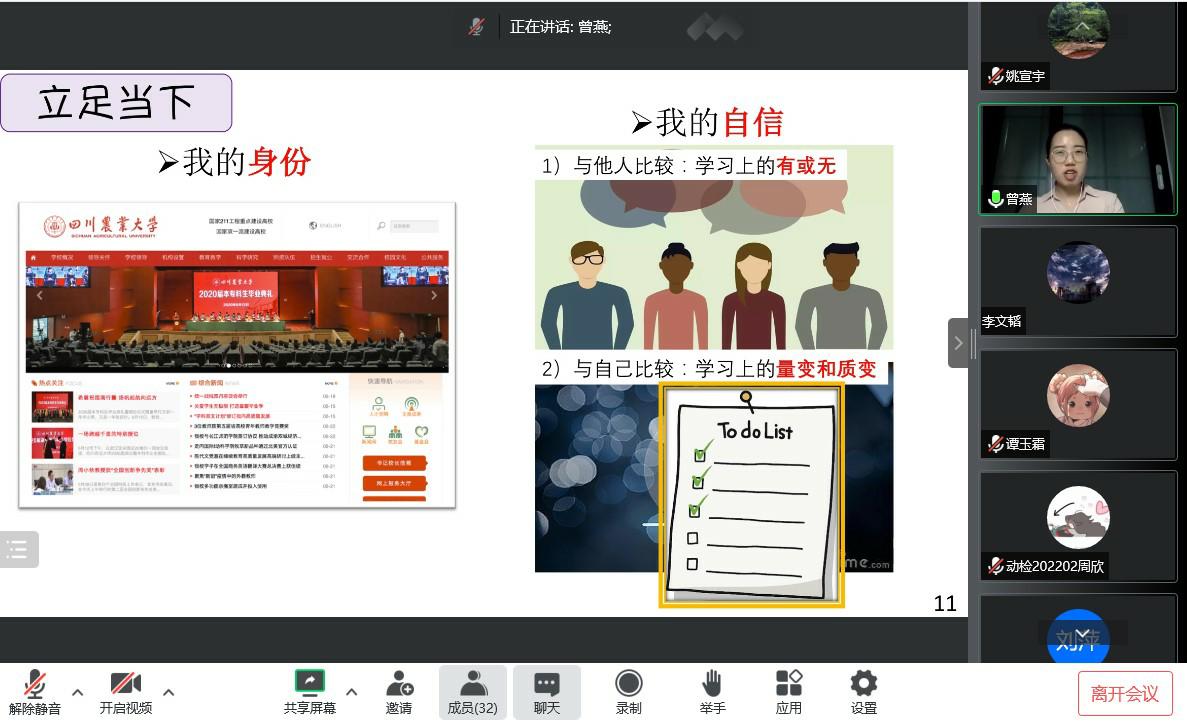 未抵校园,云端先见。9月20日,动检202202小班召开了第一次班会暨小班见面会,融合专业教育与入学思想教育,引导小班同学树立正确的大学观念、尽快适应身份转变,更好地投入大学生活;提前发放专业相关培养方案,讲解专业前景与就业,引导同学建立专业认同感与自豪感,在专业学习上务实求真,在专业领悟中勇敢探索。