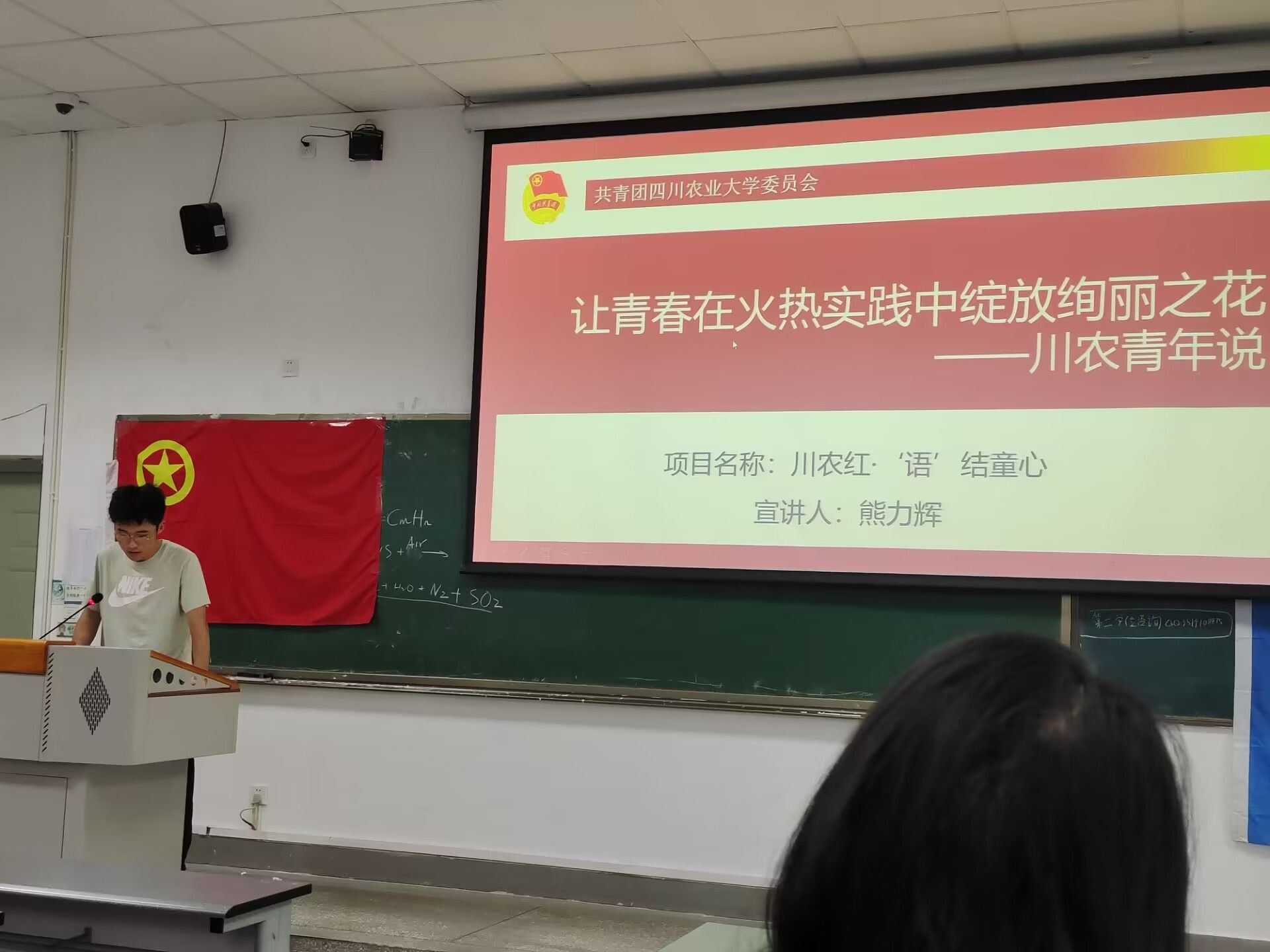 “时间归来话成长”主题分享会邀请到了来自药学202101班的学生董禹彤与尹怡婷分享其在暑期作为第三十一届世界大学生夏季运动会志愿者的体验与感悟,介绍志愿服务中暖心有趣的故事。她们用自己的体验让成员们领略了一场青春的盛会、团结的盛会、友谊的盛会。青年充满了活力,能够以平等、包容、友爱的视角看待和而不同,用欣赏、互学、互鉴的态度对待多种文化。此外,“川农红.'语'结童心”社会实践团队项目的成员熊力辉带来了“让青春在火热实践中绽放绚丽之花--川农青年说”的宣讲分享。他讲道:通过下乡教学方式可以推动普通话在乡村及少数民族等普通话普及率较低地区的推广。川农学子在这个时代为社会献温暖,传递着属于新青年的五四精神。