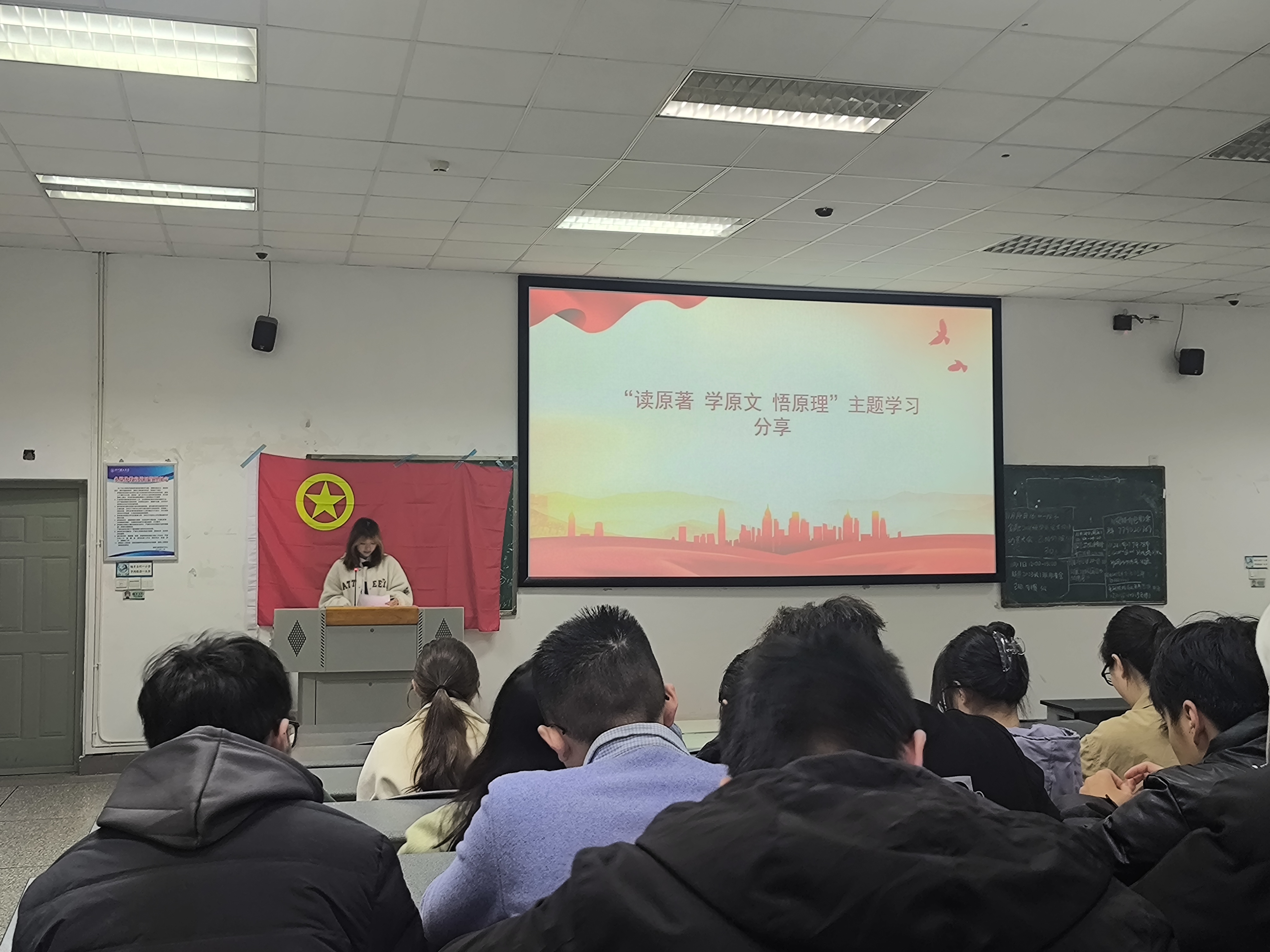 伴随着参与成员庄严的团歌声,本次团日活动拉开了帷幕。主持人白意和朱轶凌带领各团支部成员进行了“读原著 学原文 悟原理”主题学习,让各团支部成员对建成富强民主文明和谐美丽的社会主义现代化国家和实现中华民族伟大复兴梦想的信心更加坚定无比。