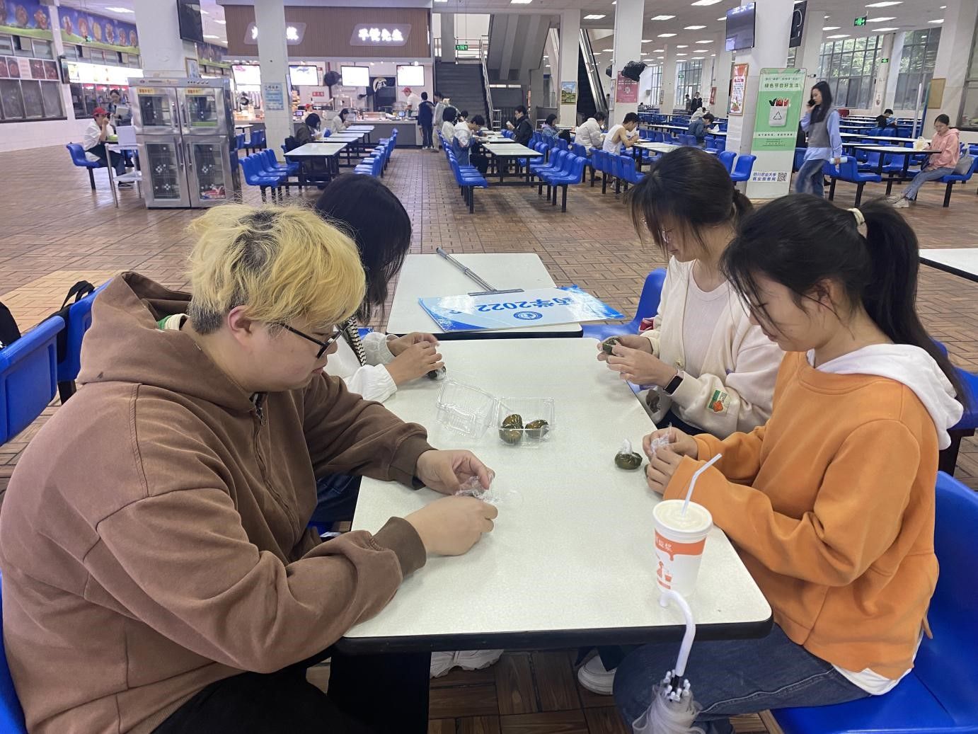 4月4日活动当天,各班成员于生活广场集合,开展了青团制作工作。团队成员到齐后,亲手制作了青团并将其赠送给了烈士陵园工作人员和到达陵园祭奠的各行业人员,为他们带去温暖,引导来到陵园祭奠的人们文明缅怀。