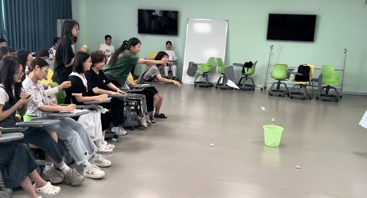本次活动游戏环节同样深入人心。该环节共由三部分组成:“雨点变奏曲”含有五种指令:“刮风”时呼气、“小雨”时互点手指、“中雨”时双手轮流拍大腿、“大雨”时鼓掌、“暴雨”时双手轮击桌板。这个游戏考验成员记忆力和反应力。“听声识人”考验成员对彼此声音的熟悉程度,成员们或脱口而出正确答案,或频频试错方得正果,这一部分活络了成员之间的感情,并进一步增强了成员之间的“班魂”纽带。“OUT吧!焦虑君”鼓励成员们写下现阶段烦恼并由另一位成员现场解答,不论是经济焦虑、体重焦虑还是容貌焦虑,在现场都得到了较好的宽慰,切实为解决成员们自身问题提供了可实践的方法。