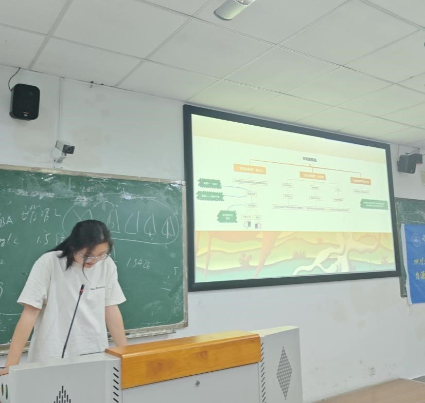 而邓黎黎则以扎实的生物学功底,对《自私的基因》进行了深入浅出的解读。她不仅从专业角度剖析了基因遗传与进化的奥秘,还融入了个人的思考与感悟,探讨了基因与人类行为之间的复杂关系。她的分享助力了在场师生窥见生命本质的奥秘与道德伦理的深邃。