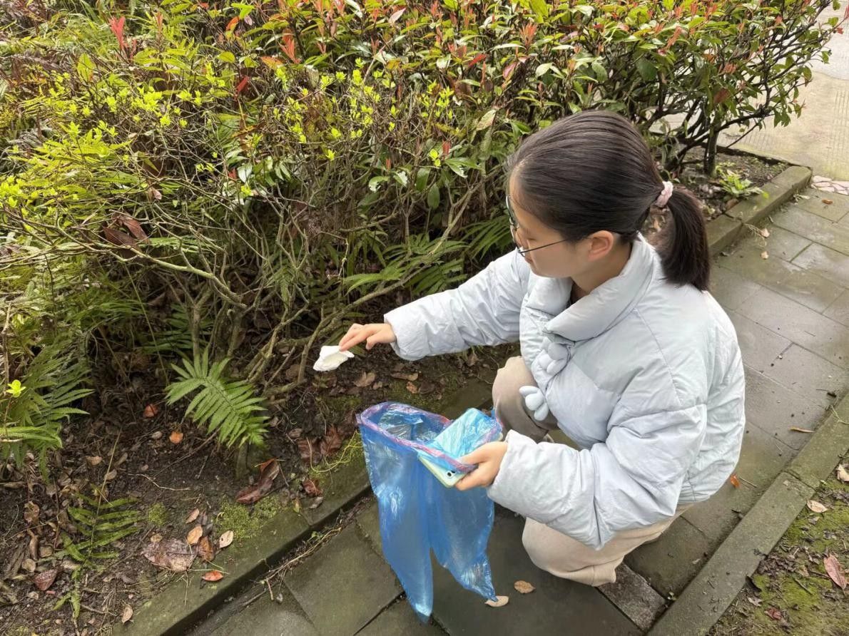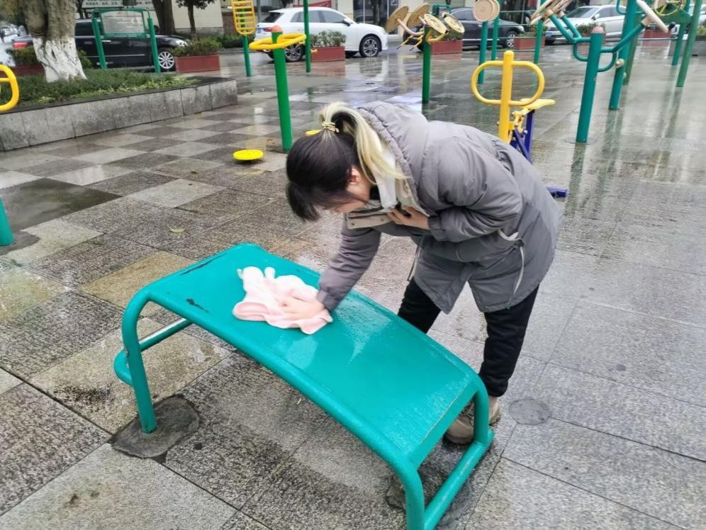 活动前期,班长制定了周密的方案,不仅对活动的每一个环节进行了细致规划,还明确了每位成员的分工与活动流程。考虑到活动实际需求,班长带领班委团队提前筹备了充足的垃圾袋、清洁刷、毛巾等各类工具,保障了活动开展的基本物资需求。活动期间,成员们对社区公共区域开展拉网式排查,在绿植带深处、休闲长椅间隙、健身器材周边等卫生死角,志愿者们俯身清理积存烟头、塑料包装等废弃物。此外,成员们还拿出毛巾对社区的公共健身设施进行擦洗,让健身设施恢复干净整洁的面貌,为社区居民提供一个良好的使用环境。