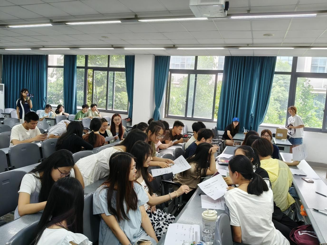 5月16日,同学们齐聚4B406教室,在工作人员的安排下有序落座。活动伊始,主持人白峻玮、高海锋借助《头脑特工队》的经典片段,巧妙引出了色彩疗愈的主题,瞬间点燃了现场的气氛。随后进入分享环节,成员们纷纷展示精心准备的物品,并展开交流。紧接着的热场游戏环节将活动推向了高潮,“看字说颜色”和“故事接龙”两个小游戏。这不仅考验了成员们的反应能力,还极大地增进了团队成员之间的默契,提高了大家的协作能力。