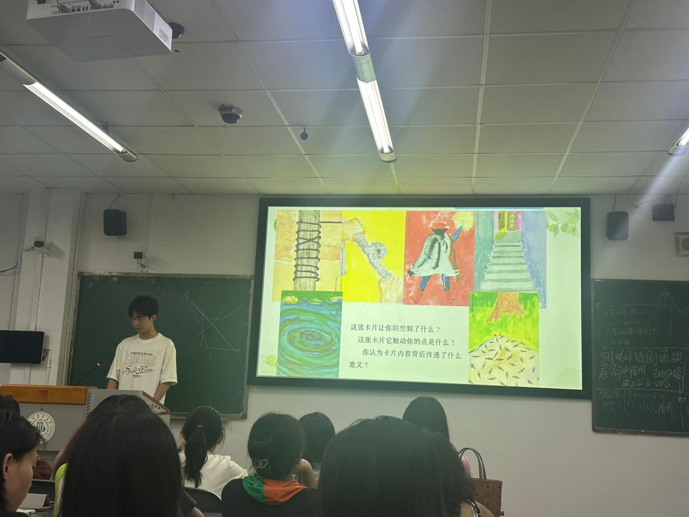 “心语漂流·匿名回声”环节为学子们提供了匿名倾诉与回应的空间。大家将近期印象深刻之事写在卡片上,卡片经打乱重新分发后,每位参与者在背面写下自己的见解或鼓励话语。这一过程让学子们自由抒发内心情绪,也让他们对在学习或是生活上的困扰有了新的见解。匿名的交流方式使学子们毫无负担地表达自己的情绪,在文字之间获得温暖与支持。