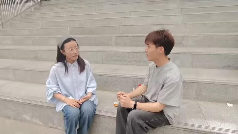 图为杨露对何庭科的采访