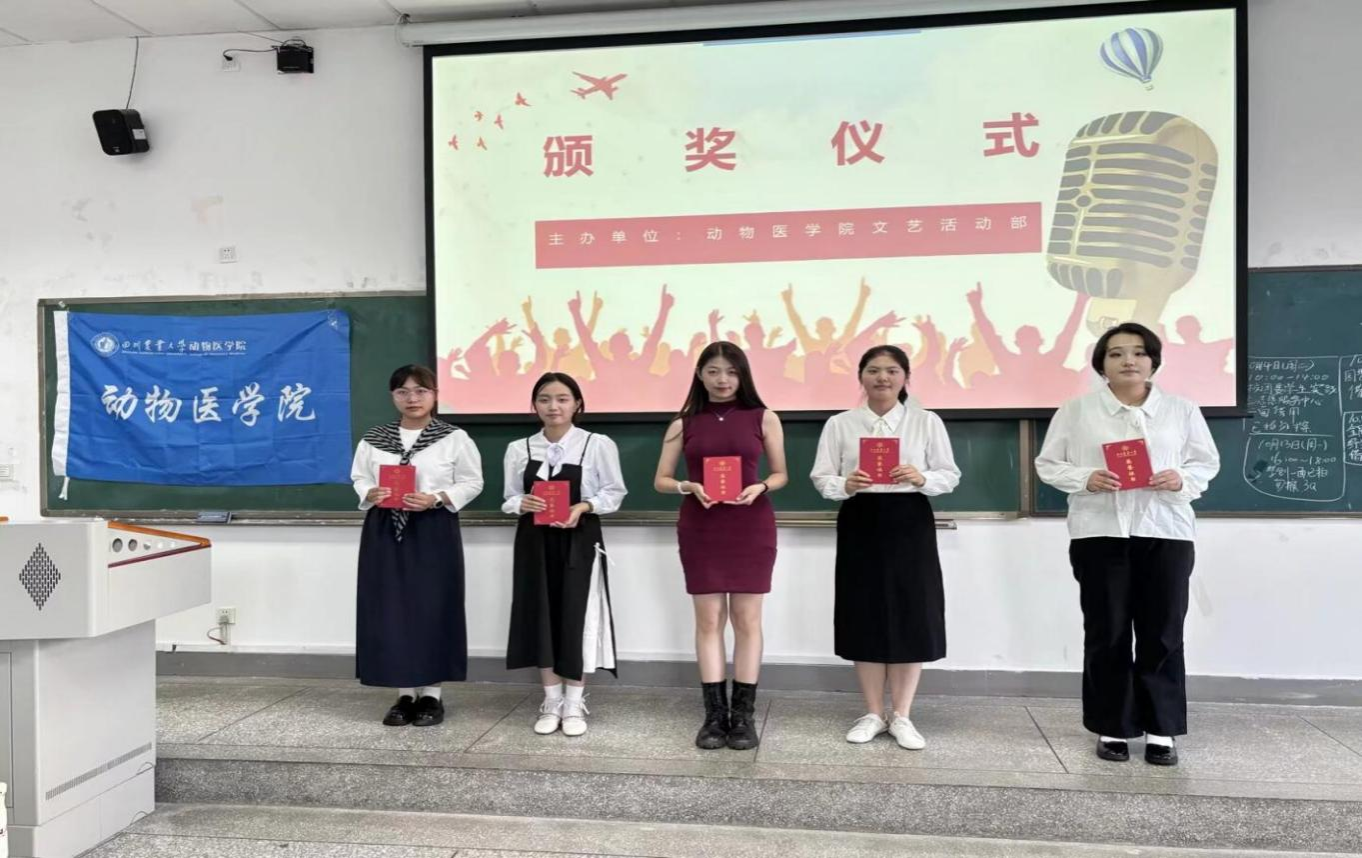 初赛环节中,选手们依次登台,带来自选主题的主持演讲。有人用沉稳大气的语调营造庄重氛围讲述红色故事;有人化身校园主播,以轻松诙谐的节奏讲述动医日常。虽无统一命题,但不少参赛选手巧妙融入专业元素——从专业课的严谨到二课活动的热忱,从川农银杏大道的秋景到探讨兽医使命的担当,这些选题的背后是对学院文化的深情认同。