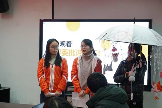 秉持环保的原则,动医201903班的同学使用废旧报纸制成蛇形手杖,手杖上是以超轻黏土为原料捏的小人和熊猫,寓意动物医学,体现专业特色。该班负责人表示“希望同学们养成环保意识并通过自身努力建设美丽中国。”