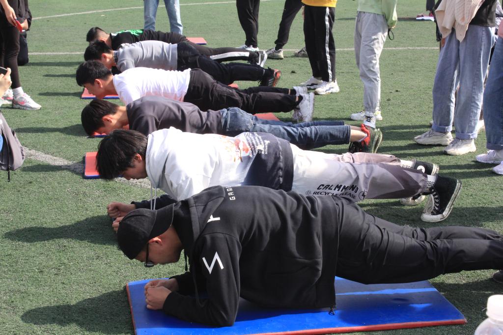 本次运动会设有个人项目径赛100m、200m、400m、女子800m、男子1000m,跳高、急性跳远、铅球、三级跳、平板支撑及团体16(8男8女)×60m迎面接力等比赛项目。参与本次运动会的运动员们精神抖擞,气宇轩昂,按照比赛顺序有条不紊地参加项目,一旁的小班学生们则热情高涨地为各个项目的参赛选手加油助威,以此增强选手们的自信心,减轻参加比赛的紧张感。
