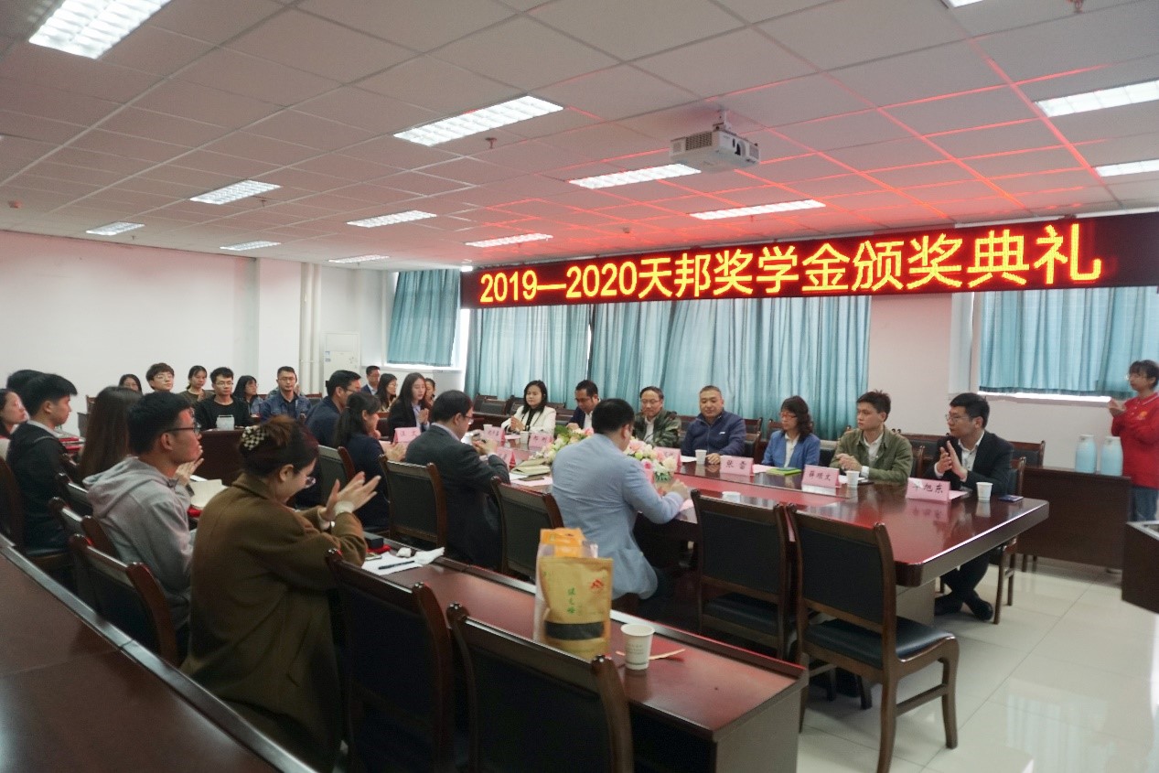 4月20日上午,bat365官方网站学年度研究生“天邦奖学金”颁奖典礼在7教1109会议室举行。天邦食品股份副总裁李双斌、人力资源总监张雷、首席科学家傅衍,动医学院党委书记廖鹏、副院长贾仁勇、陈舜等参加了颁奖典礼。