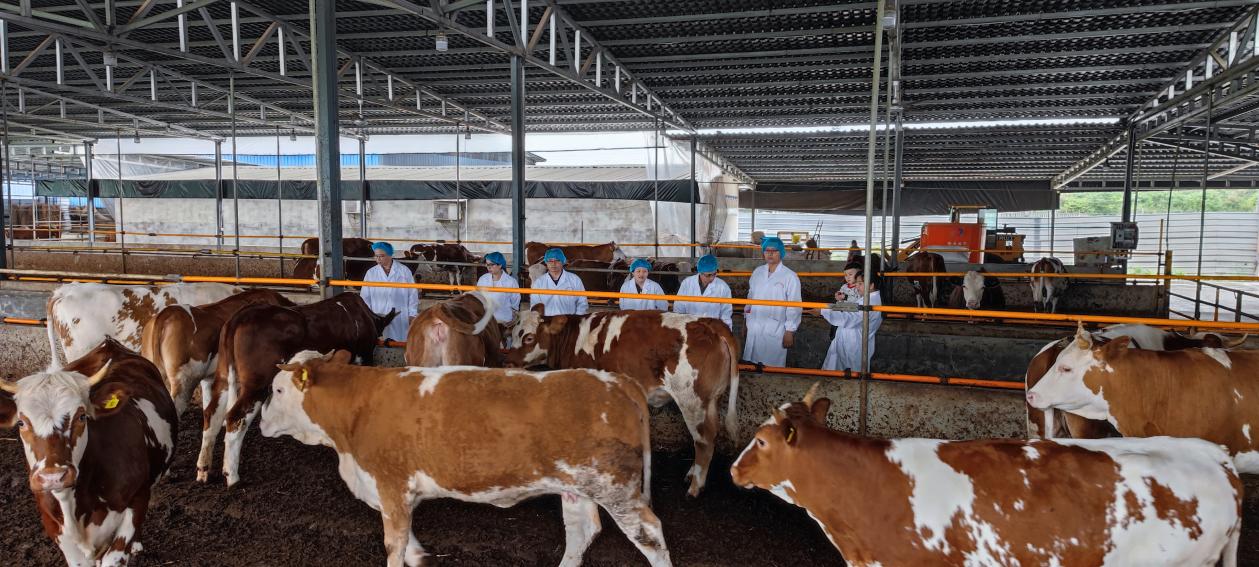 15日上午,两支部首先来到蓝博农业开发有限公司,引领支部青年教师现场解决肉牛养殖中遇到的饲养管理及疾病防控问题,为企业送去了由动医教师主编的近百万字的《中国乡村兽医手册》《肉牛标准化规模养殖图册》等工具书,为公司开展职业农民技术提升、肉牛养殖疾病防控及种养循环技术示范帮扶提供有力的参考和理论实操支撑。两支部还将把蓝博农业作为支部青年党员服务乡村和专业学位研究生实践锻炼的定点对象,定期委派青年专家协助企业开展基层兽医技术员培训,服务乡土兽医培训的同时,提升青年教师的社会责任感和社会服务能力。