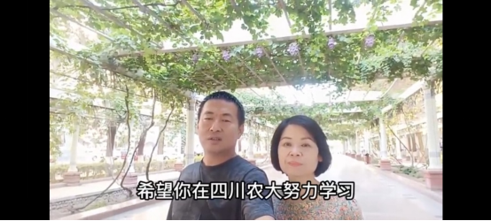 “感谢师兄师姐们对你的照顾,你要好好向他们学习”“在美丽的天府之国和川农大的校园里,要好好学习专业知识,不断提升自己”“希望你秉持川农大‘追求真理,造福社会,自强不息’的校训,成为有独立人格和对社会有价值的人”“成为川农动医的新同学,是你的骄傲也是爸爸妈妈的骄傲,希望你依然能够保持积极乐观的生活态度,保持谦虚努力的学习状态,依然能够合理作息,适当锻炼,保持身心健康,为实现你心中的梦想而奋斗”……十多分钟的视频里,100多个四川省外新生的数百位家长,或依次寄语,或集体祝愿,或语重心长嘱咐,或举家比心加油。在同一个中秋时刻,不同地域、不同乡音、不同风格,新生家长们通过网络,跨越千里,用自己特有的方式祝福第一次独自在异乡渡过中秋大一新生。有用稚嫩的声音为过生日的姐姐唱着生日快乐歌的年幼妹妹;有欢笑地叮嘱孙子要注意身体,自己却忍不住擦拭眼泪的奶奶;有同样穿着迷彩服,在家和新生一起军训,鼓励孩子强身报国的父亲;有戴着安全帽深夜赶工,提醒女儿不要担心家人,要好好珍惜大学时光的父亲;也有揭新生短处,嘱咐要向优秀学长学习,努力改掉坏习惯的母亲和姐姐……很多新生惊喜发现视频中有自己父母、家人、亲朋,当即热泪盈眶,不少新生立刻拿起手机给远方的家人送去了同样的问候和祝福。