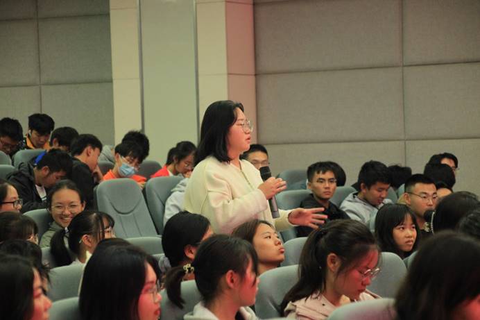 授课后,两位企业高管还和现场新生围绕有效的学习方法、考研的必要性、怎么选导师、如何确定就业方向等新生们关注的问题给予了指导。期间,参加分享会的新瑞鹏优秀青年领军人才的代表、动物医学2015届校友王玉琴也为现场的动医大一新生分享了自己本科毕业后从一个普通宠物医师到专科医院院长,再到综合中心医院主治医师的成长经历,以自己在校期间的生活体验为参考,向学弟师妹解答了大学生涯应该把握的几个最关键准备。2个小时精彩丰富的分享和设身处地的建议鼓励也引得2021级动医新生阵阵掌声和积极提问。