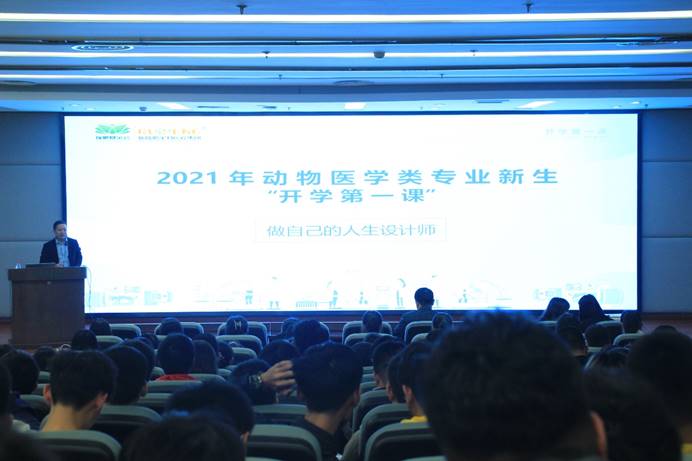李江以“做自己的人生设计师”为题,围绕刚刚走进大学校门的新生应该如何更好通过了解专业、行业、企业的人才需求、知识技能可应用场景与最新发展动态,优化自己的大学专业学习和自己的职业规划。尤其是针对当下学生考研升学意愿更高的大学规划,李江从德才兼备、心理准备、知识储备、技能具备等方面,结合川农学生在宠物医疗相关行业成长发展的实例,给动医大一新生讲授了该如何做好自己的专业学习计划和职业发展规划。