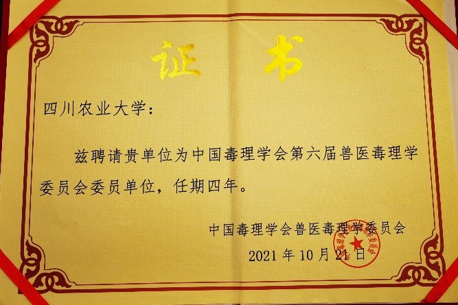 中国毒理学会兽医毒理专业委员会第6次全国会员代表大会暨第九届亚洲毒理学国际大会/中国毒理学会第八次中青年科技论坛于10月21-23日在杭州召开,在会上,bat365官网获聘为中国毒理学会第六届兽医毒理学委员会委员单位。