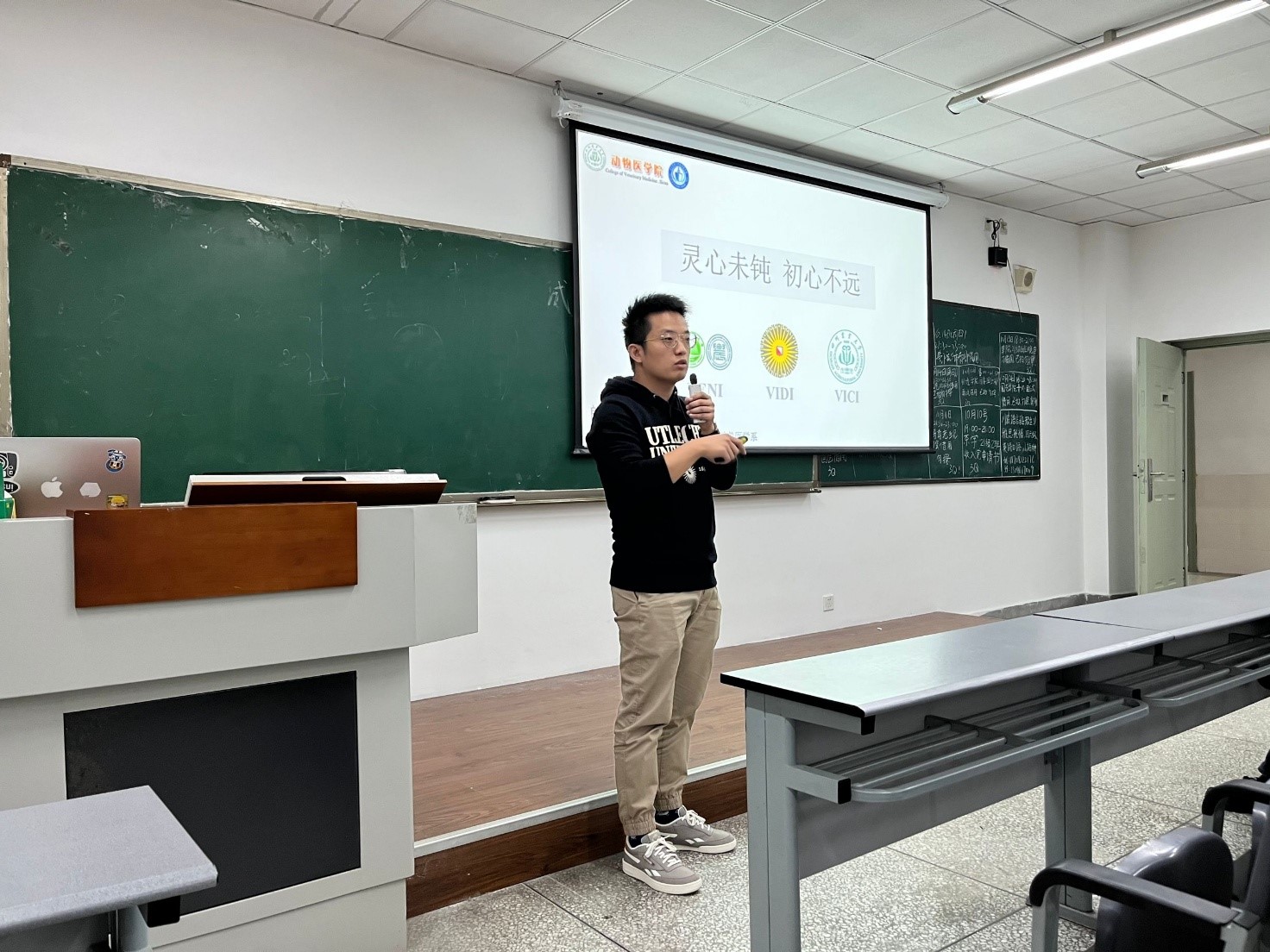 10月12日,经过不到1个月的筹备,预防兽医系党支部“青年学者谈心会”正式开讲。首讲由预防系刚刚引进人才郎一飞博士开启,他以“灵心未钝 初心不远”为题,与全系近50余名师生分享了自己的求学和科研成长之路。