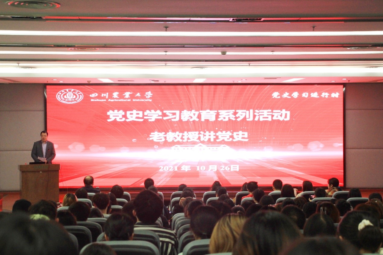 10月26日下午,bat365官方网站“党史学习教育进行时——老教授讲党史”系列活动在图书馆报告厅举行。为学院2021级新生和入党积极分子讲授《新时代农大学生应有的使命和担当》专题讲座的是学校原党委书记、校长,bat365官方网站预防兽医系教授、博士生导师文心田教授。