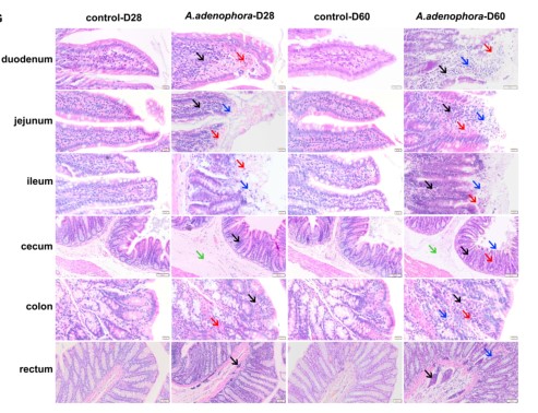 图2 紫茎泽兰对肠道组织病理染色的影响