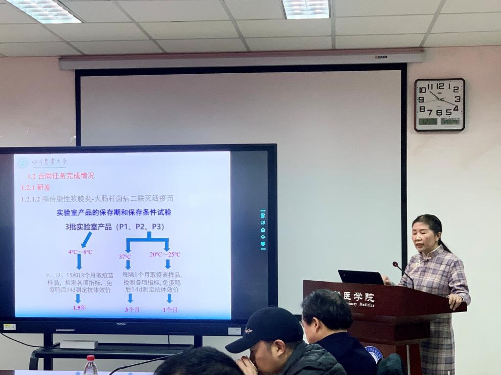 考核考评会中,四川省兽药创新团队首席科学家汪铭书教授就2021年四川省兽药创新团队的整体工作和相关重要突破与成绩做了总结汇报。随后,兽用治疗类生物制品研究、兽药化学药物研究、兽用中药资源与制剂研究、兽药工艺制造研究、兽药临床应用研究、兽药安全性研究、宠物药物研究、兽药质量控制与标准研究、兽用预防类生物制品研究等分项岗位专家依次就所承担的研究任务做了2021年度工作汇报。