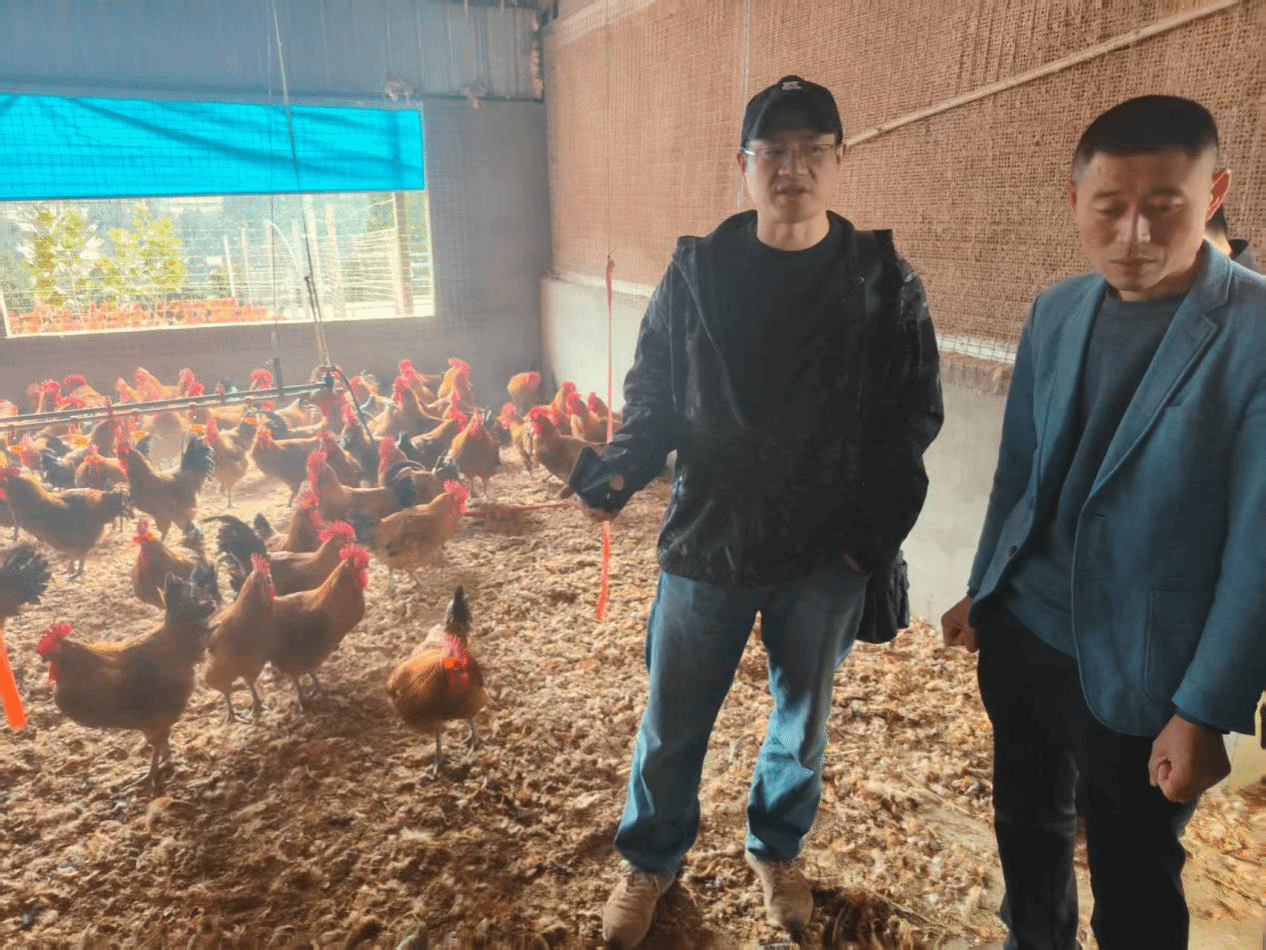在合作社饲料加工车间,舒刚一行细致考察了土鸡饲料配方与加工流程,并结合冬季气候特点,建议适当提高饲料中能量原料的比例,以满足土鸡在低温季节的生长与生产所需。