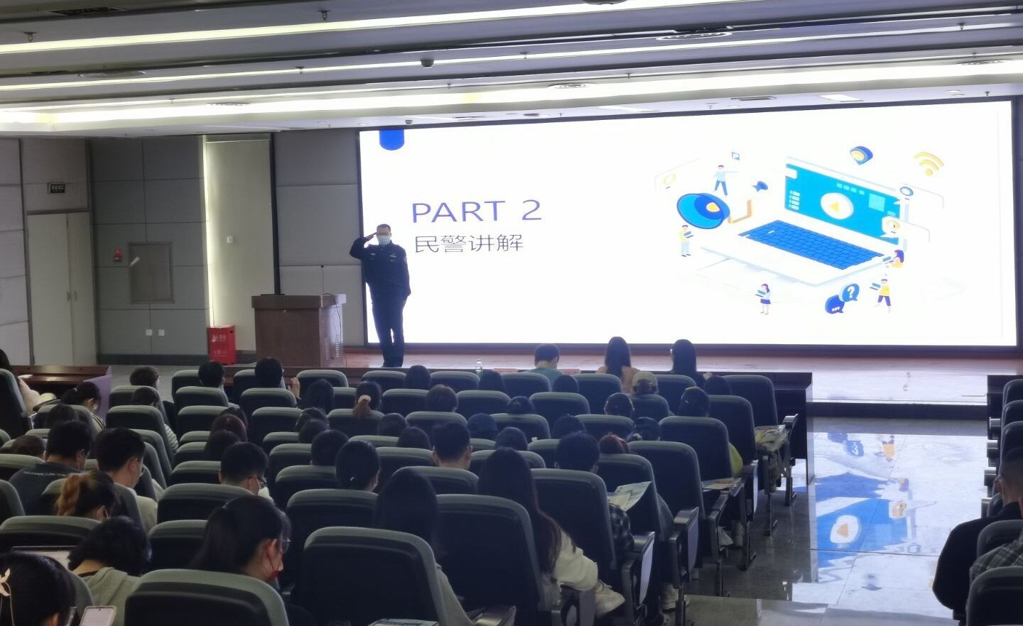 辅导尾声,王警官还通过科普视频、有奖竞答、现场答疑等和现场同学进行了互动。