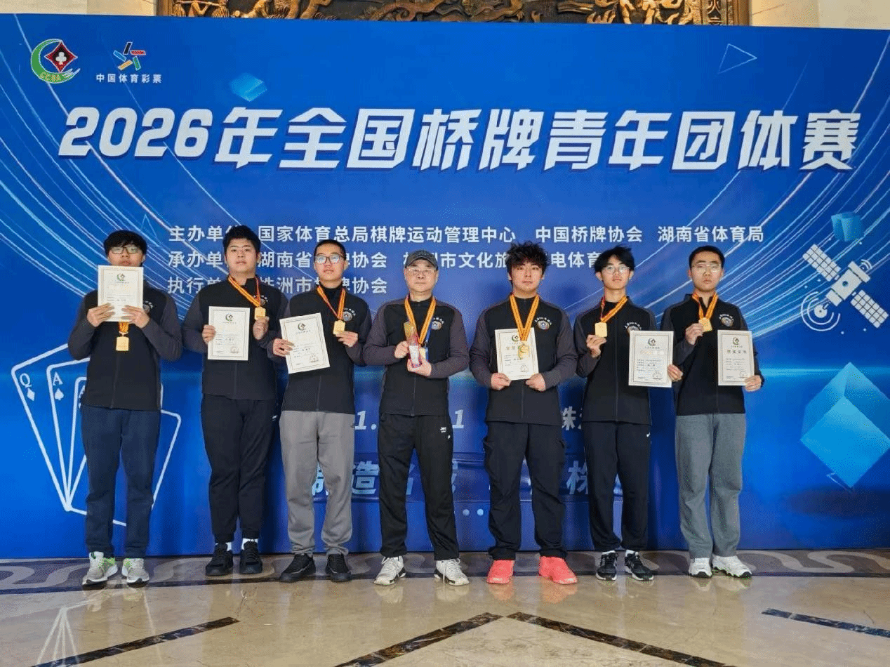 “桥牌是一项需要长期坚持、兼具智力与协作的运动,从接触桥牌到站上这个领奖台,我已经坚持了12年。”徐泽宣回顾参赛经历时难掩喜悦,“这次能带领团队夺得第一,离不开队员们的默契配合和日复一日的刻苦训练,也感谢学校和学院的鼓励与支持。希望能以此为契机,将桥牌这项有益身心的智力运动推广给更多青年学子,让更多人感受到桥牌的魅力。”同时他也透露,此次斩获全国第一,意味着团队成功获得了亚太青年桥牌锦标赛参赛资格,“我会继续刻苦训练、精益求精,争取在亚太赛场上发挥出最佳水平,为国家争光、为学校添彩。”